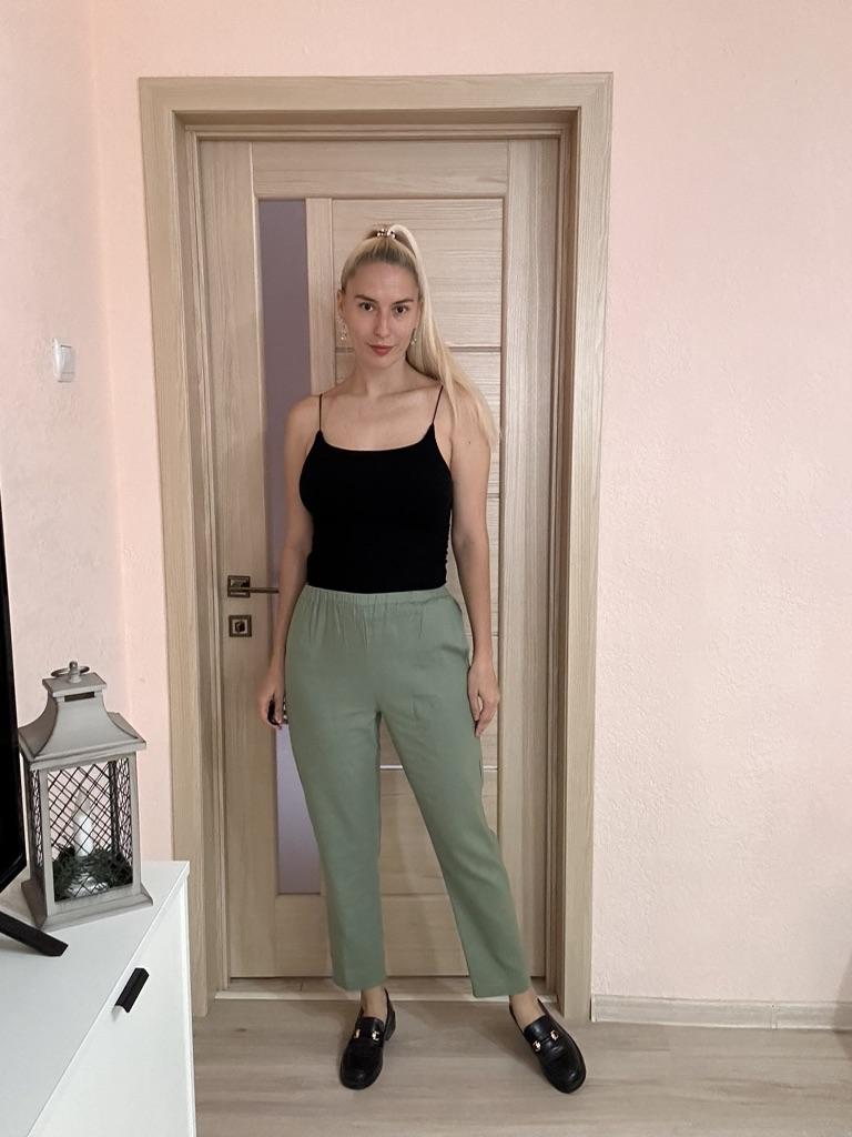 Прекрасные летние брючки. Состав просто пушка-бомба - хлопок и лен 🤌 Они невероятно легкие и самое то для летней жары. Я брала для мамы, она из них не вылазит теперь 😸 В пояс вшита резинка. Не жмет, не передавливает. Еще есть запас. Качество пошива прекрасное. Запаха не было. Параметры мамы: Рост — 165 см Грудь — 95 см Талия — 82 см Бедра — 96 см Замеры брючек: Обхват талии - 70-94 см Обхват бедер - 112 см Длина - 97 см Важно: цвет больше соответствует действительности на фотографиях, сделанных на улице.