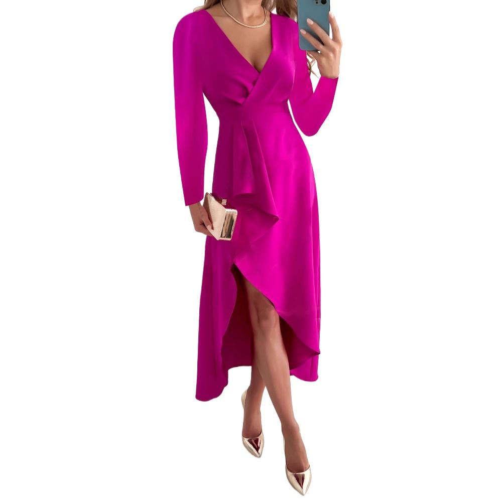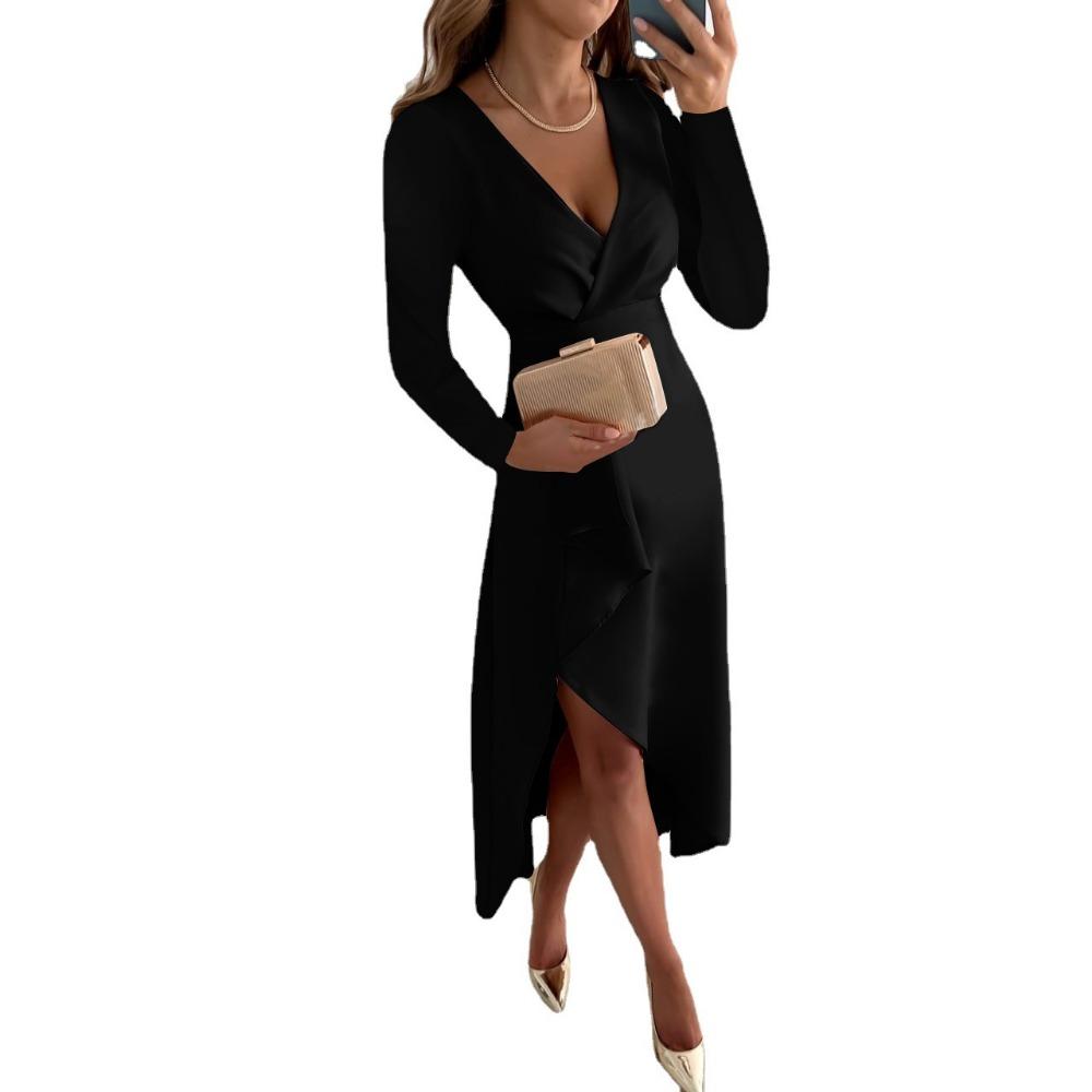 BITCED Женское осеннее платье с длинным рукавом, V-образным вырезом, усадочной сеткой и разрезом по низу