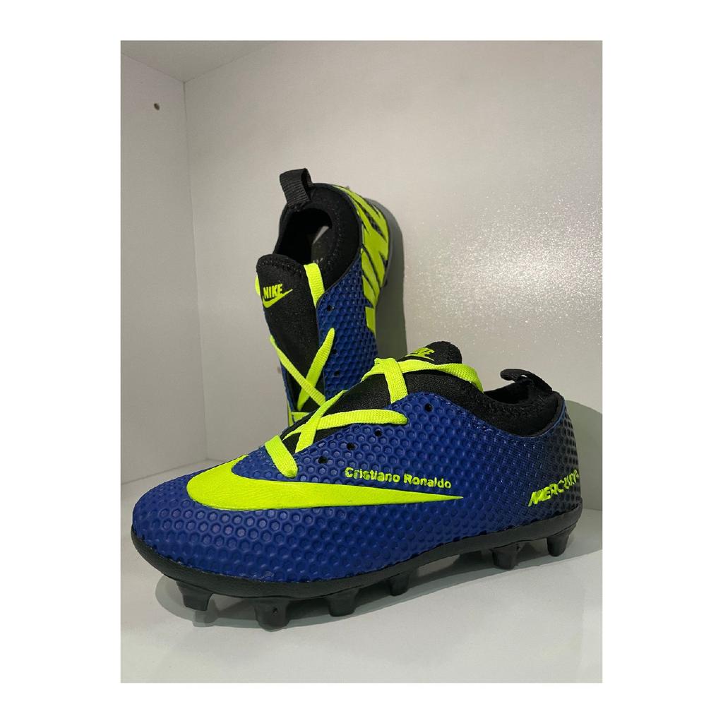 Футбольные бутсы для искусственного покрытия Super Mercury Saks сине-неонового зеленого цвета с носками до щиколотки