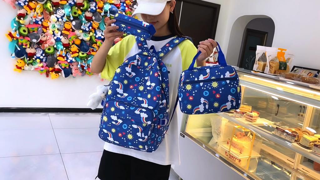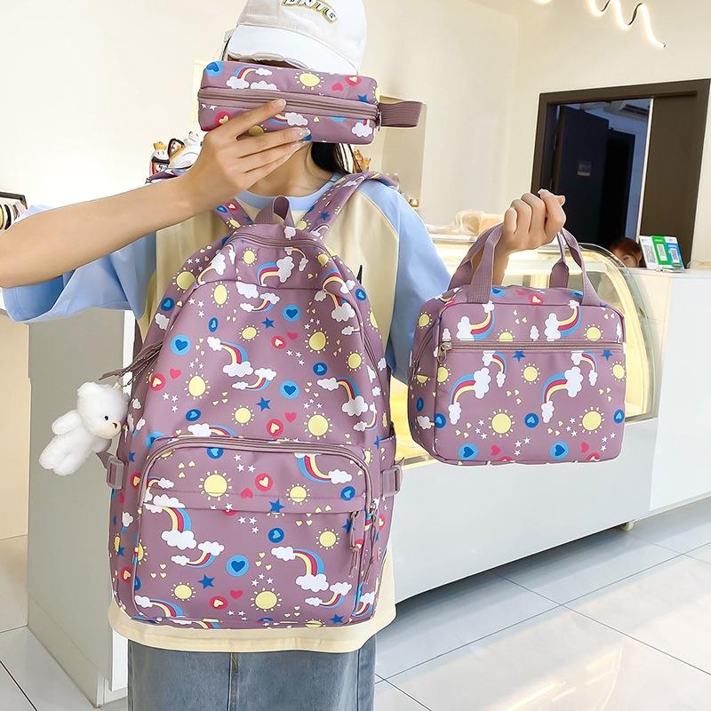 Женский рюкзак, комплект из трех предметов, школьный рюкзак с радужным принтом, рюкзак большой емкости