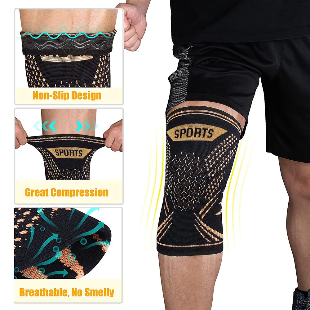 1 пара медных компрессионных наколенников — улучшенная поддержка при болях в коленях, облегчение боли в суставах