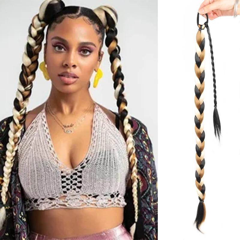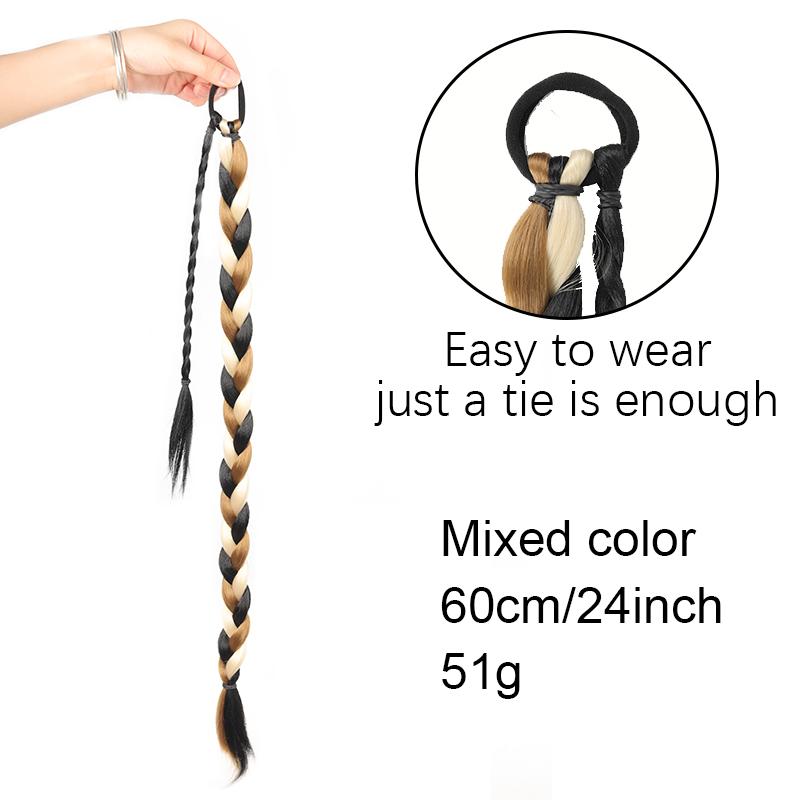 Парик из жареного теста смешанного цвета, длинная коса, хвост, женский парик, термостойкий парик из волокна, парик с косой, хвост, парик прост и естественен в ношении