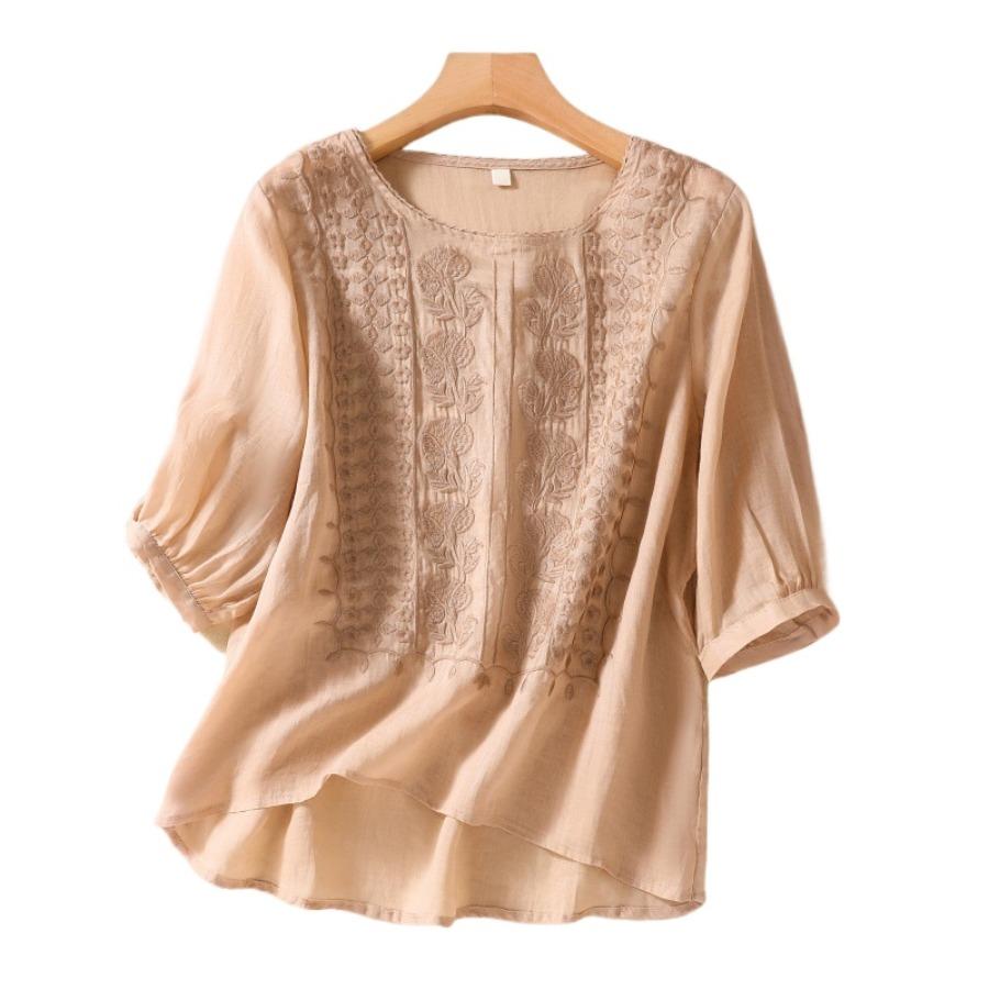 Летняя блузка для мамы, рубашка с коротким рукавом, винтажный тонкий женский топ с цветочной вышивкой, белый желтый топ — купить товар онлайн с бесплатной доставкой до всему миру!