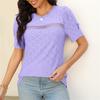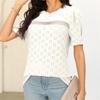 Летняя женская кружевная лоскутная блузка с коротким рукавом розового и белого цвета, повседневная женская пуловер с круглым вырезом, топ