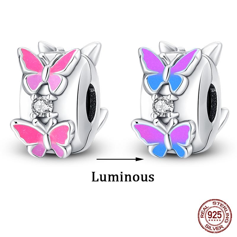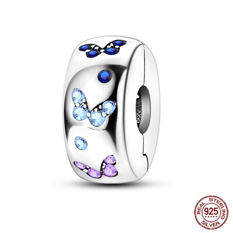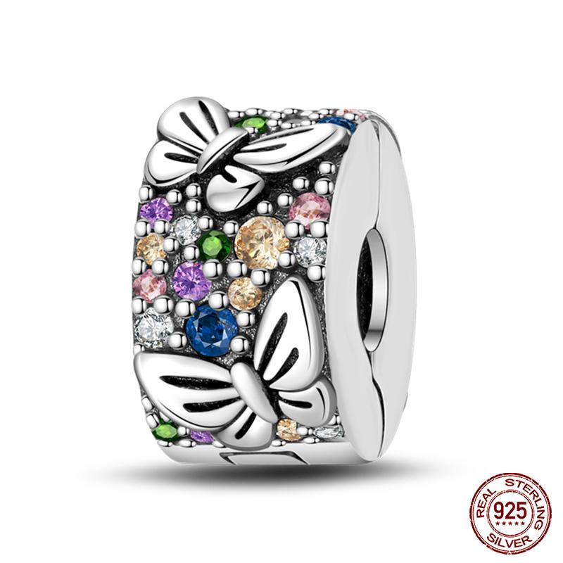 Подходит для оригинального браслета из стерлингового серебра 925 пробы, кошачий коготь, бабочка, силиконовые бусины-разделители, разноцветные циркониевые ювелирные изделия своими руками