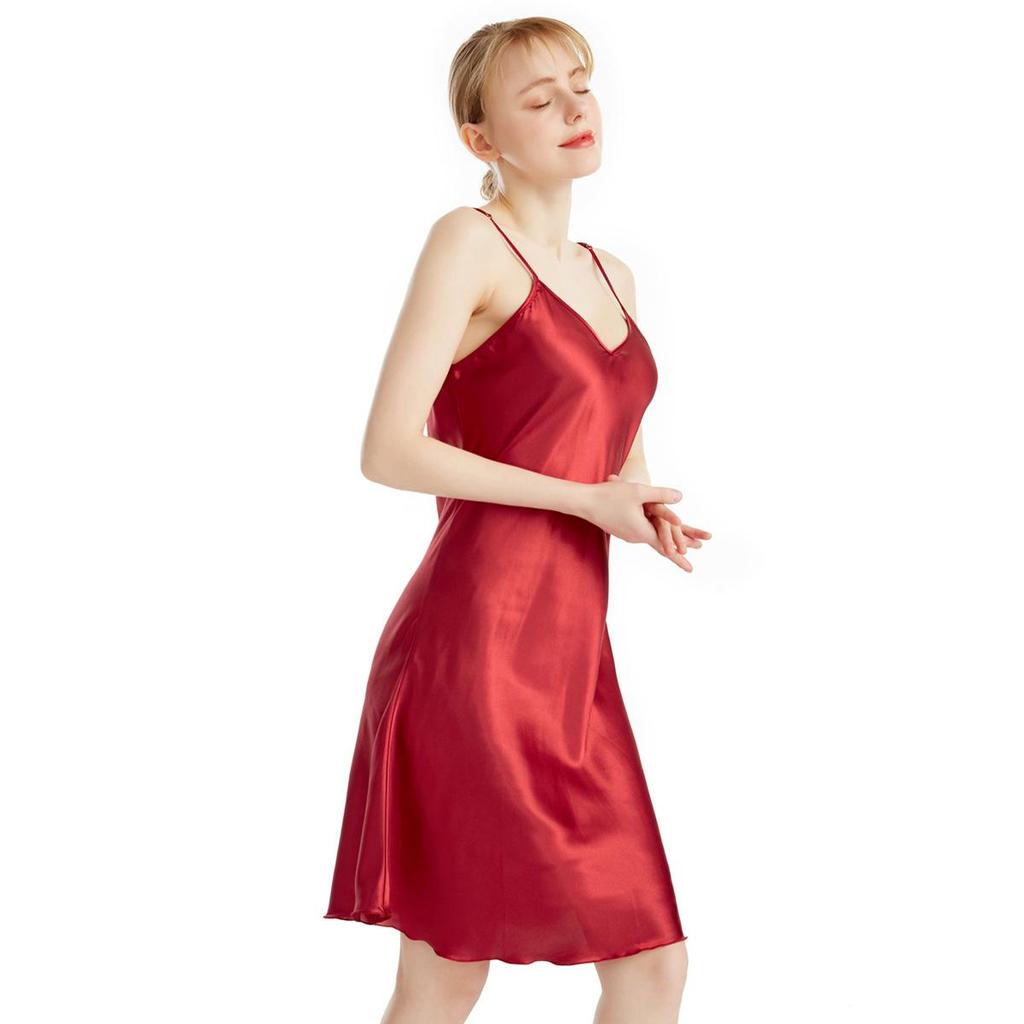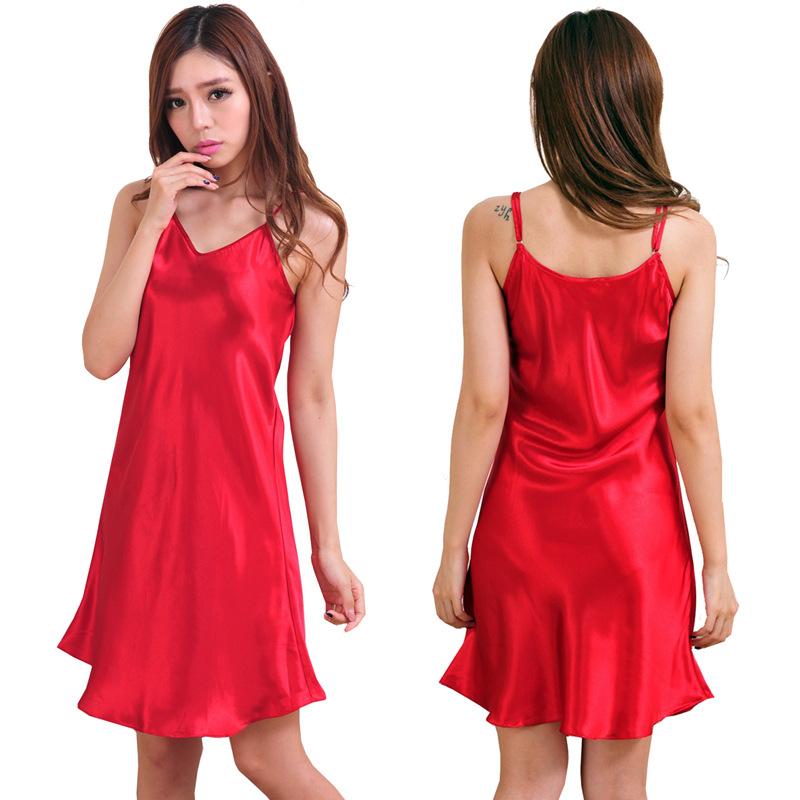 Летняя женская тонкая сексуальная шелковая бретелька с v-образным вырезом на тонких бретельках, облегающая однотонная ночная рубашка