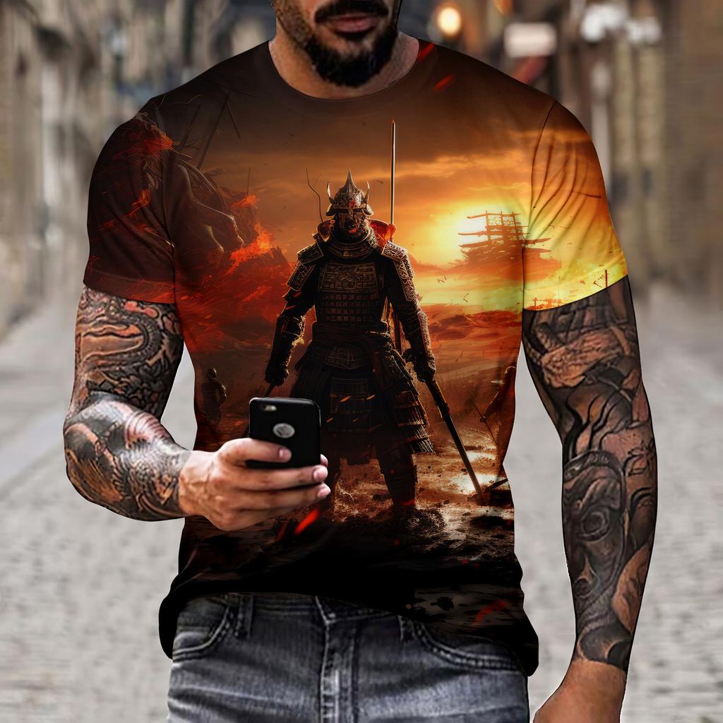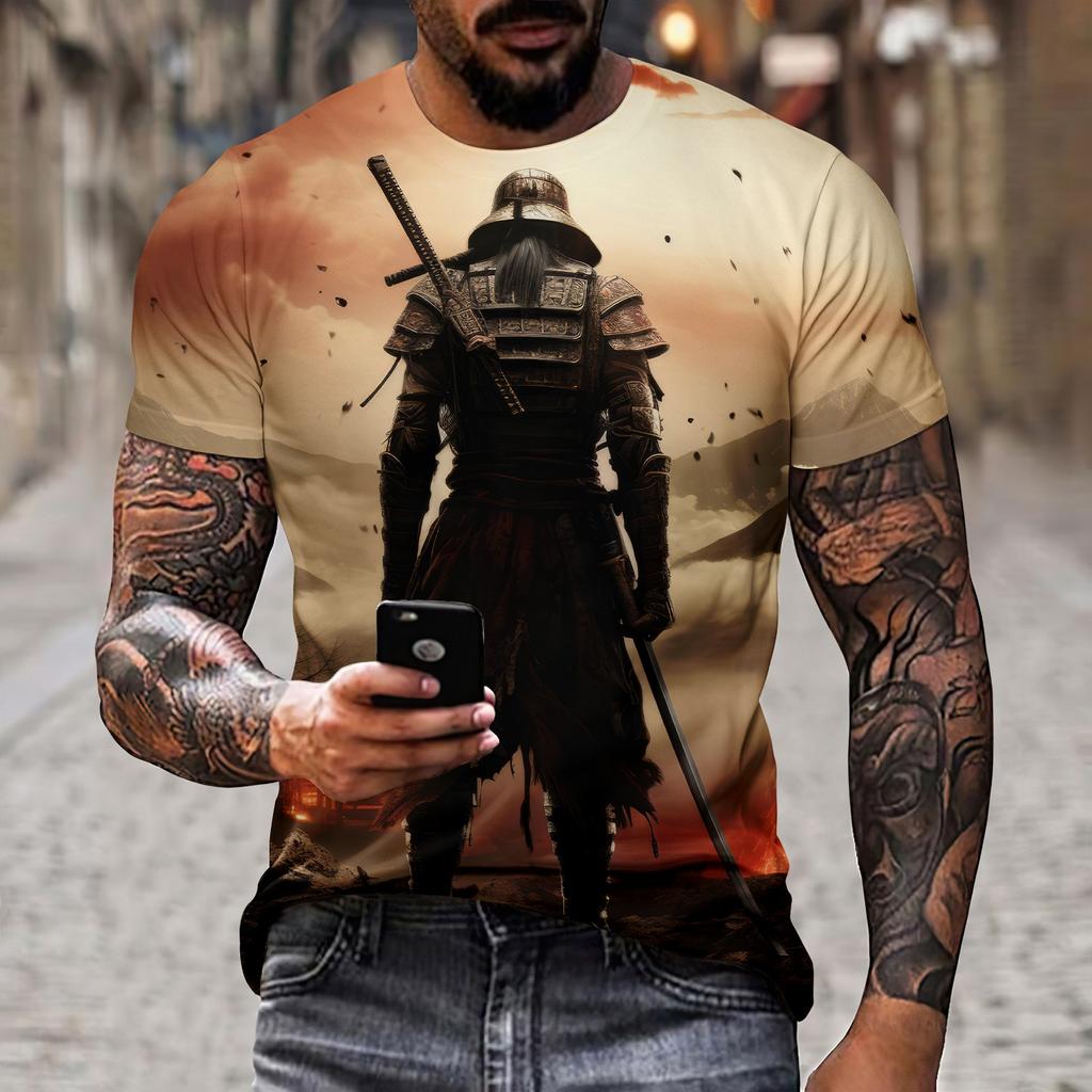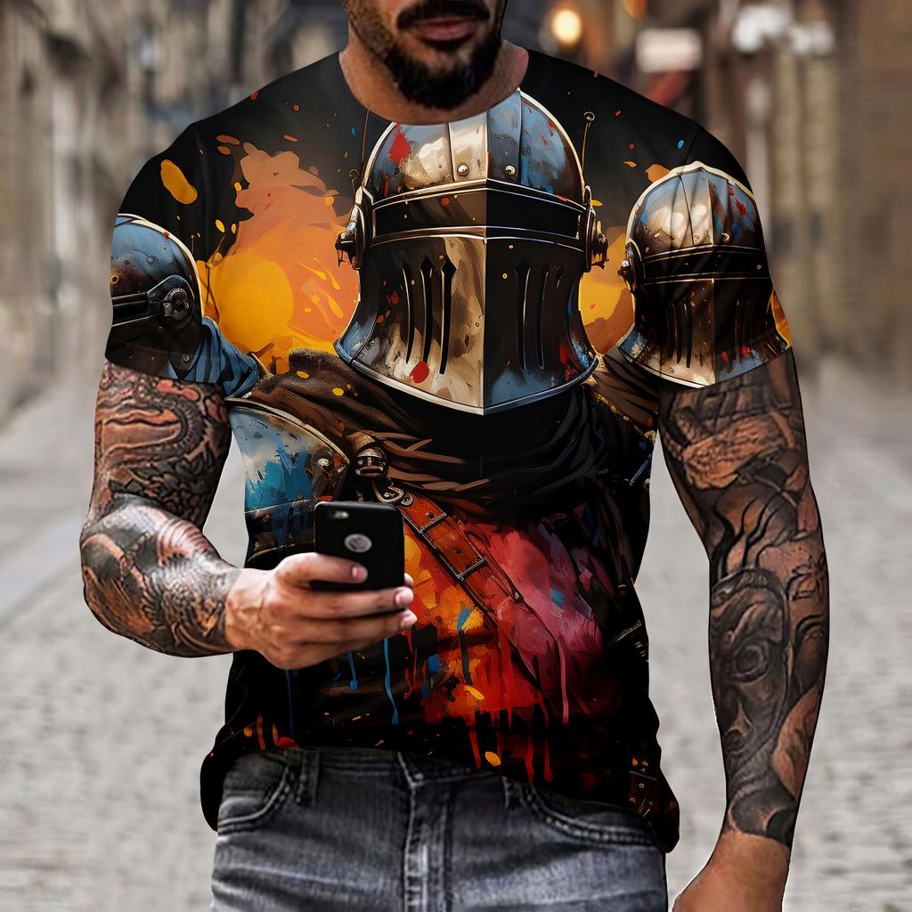Новая футболка с 3D принтом воина, повседневная спортивная футболка с короткими рукавами, свободный высококачественный летний мужской уличный топ с круглым вырезом