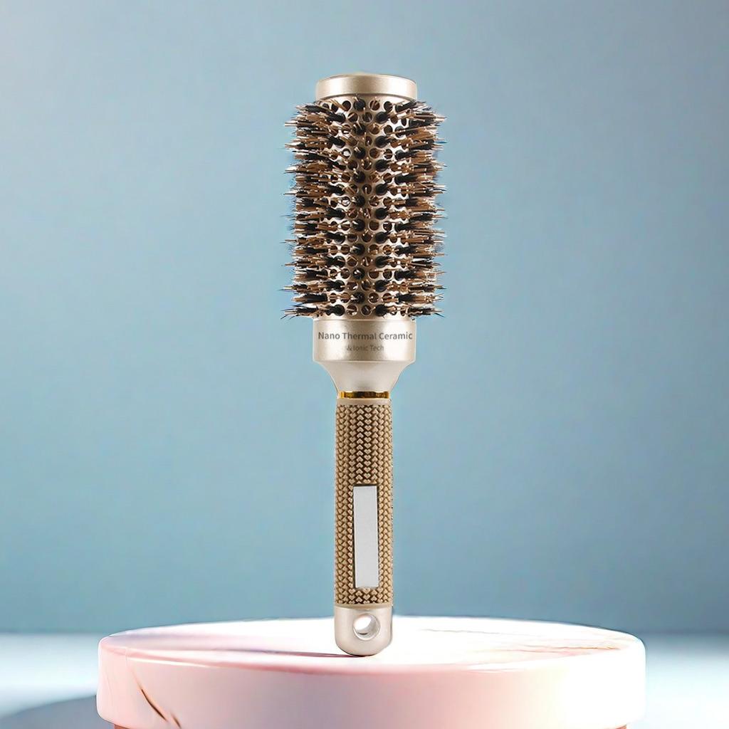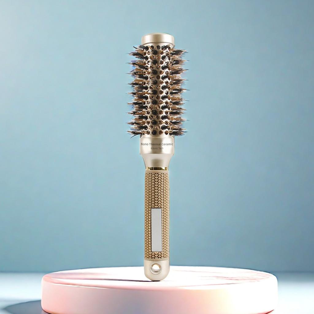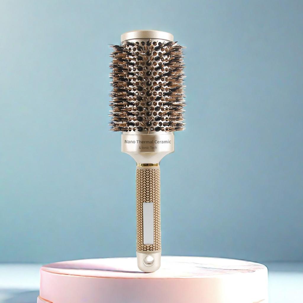 Керамическая железная бочка и щетина помогают уменьшить вьющиеся ломки и придать блеск, создавая гладкую, мягкую текстуру от корней до концов.
