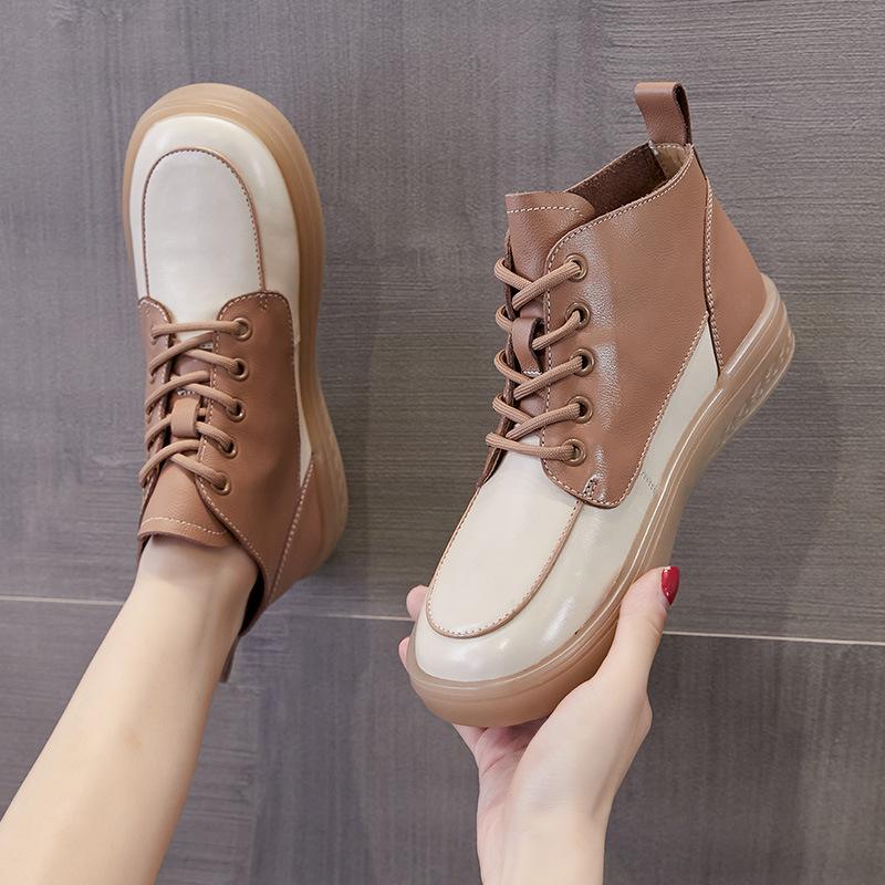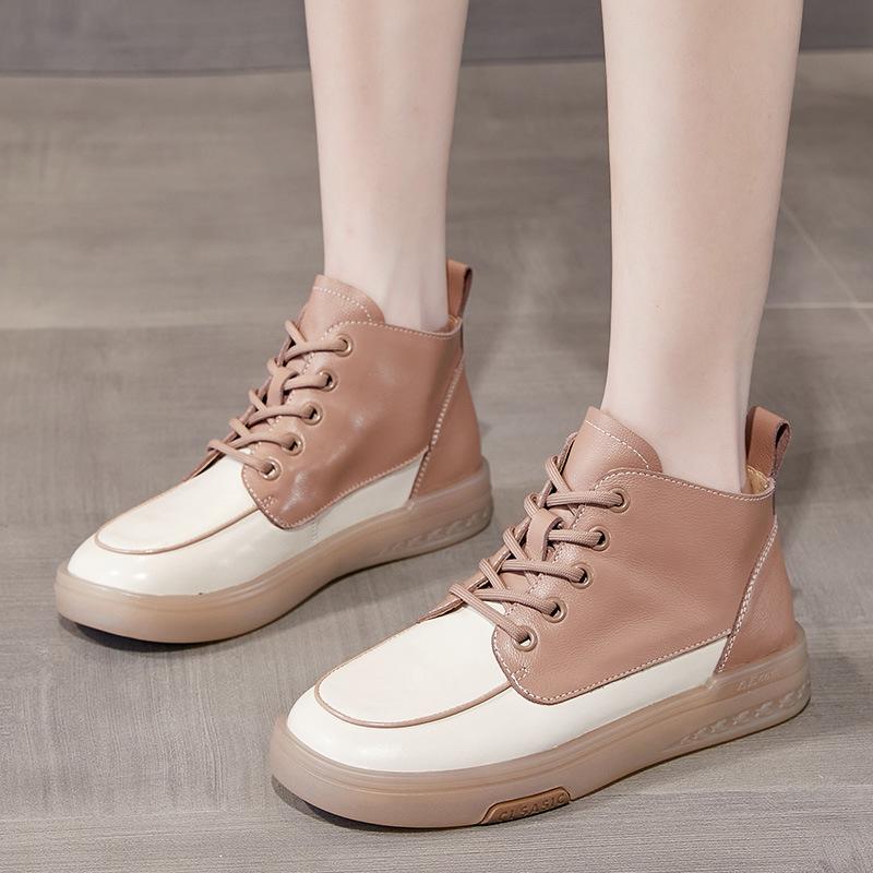 Кожаные белые туфли с высоким берцем. Женские новые удобные нескользящие маленькие кожаные ботинки. Мягкие короткие ботинки на плоской подошве.
