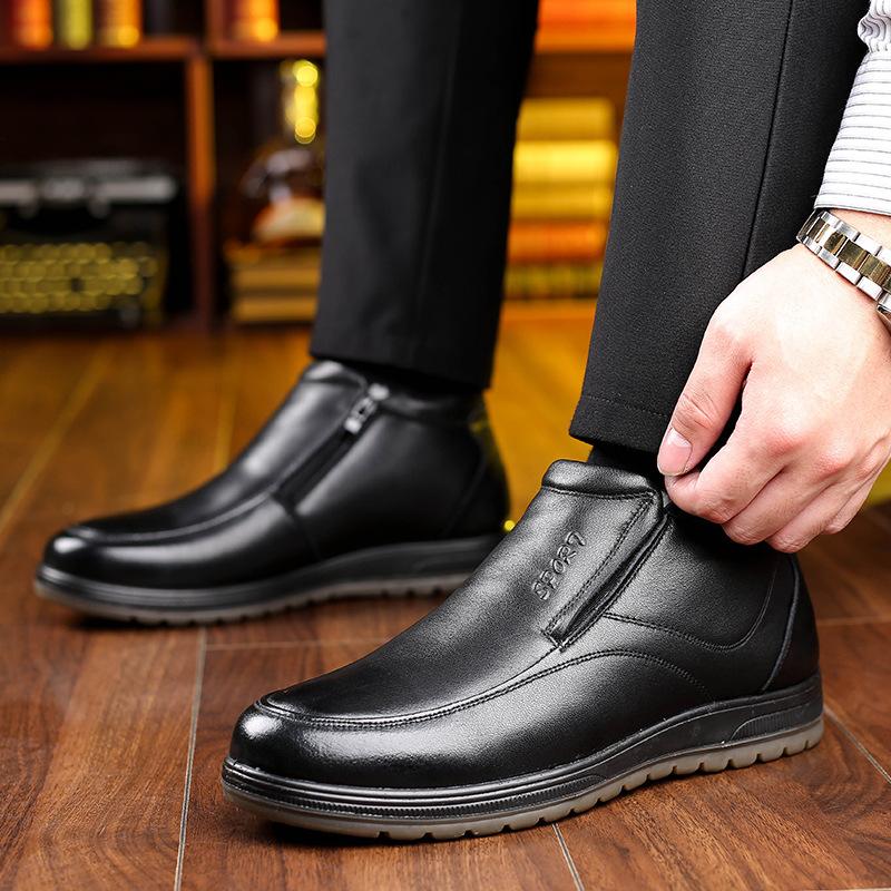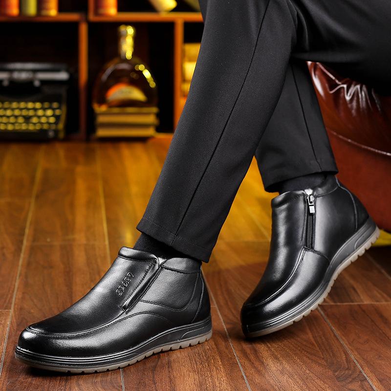 Мужская хлопковая обувь из натуральной кожи, повседневная бархатная теплая мужская обувь, утепленные мужские зимние ботинки из шерсти для среднего и старшего возраста
