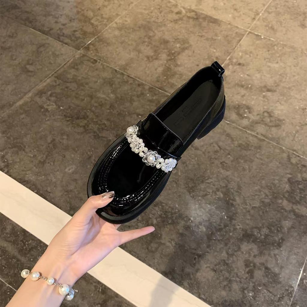 Маленькие кожаные туфли на блочном каблуке ручной работы с круглым носком и кристаллами и цветком, женские лоферы большого размера — купить товар онлайн с бесплатной доставкой по всему миру!