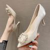 Женские туфли, новые свадебные туфли на высоком каблуке с острым носком, туфли феи фэншуй с квадратной пряжкой и бриллиантами, женская обувь на шпильке