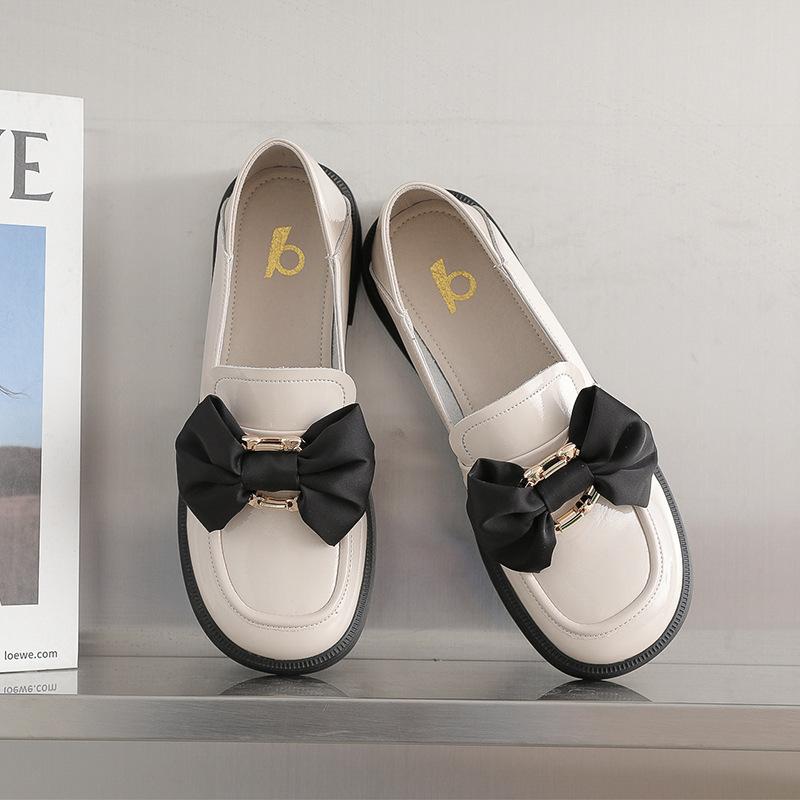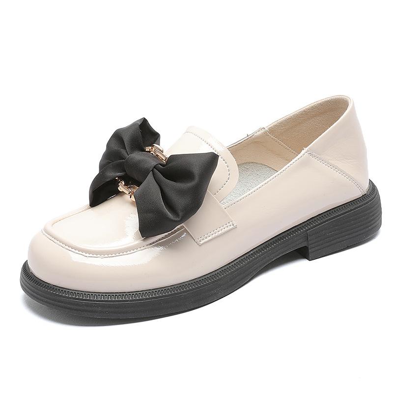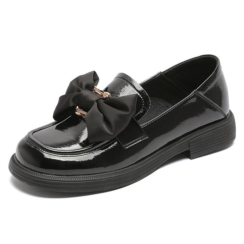 Лоферы из воловьей кожи, женские весенние новые туфли из лакированной кожи, маленькие кожаные туфли на плоской подошве с бантом, одинарные туфли