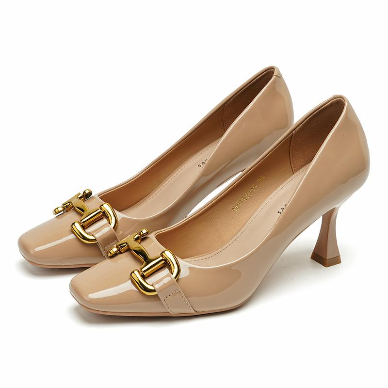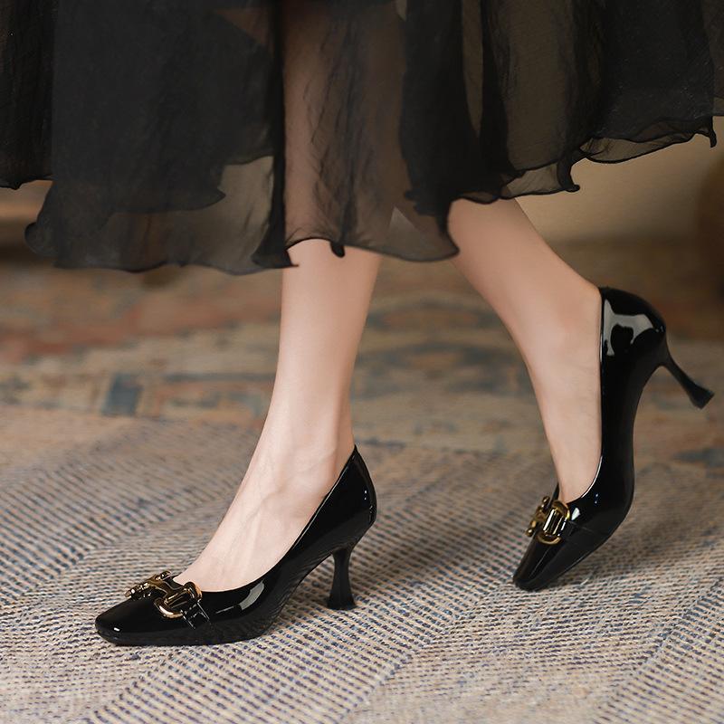 Женские новые туфли на высоком каблуке, корейская версия, туфли на шпильке с металлической пряжкой, темпераментная пригородная обувь