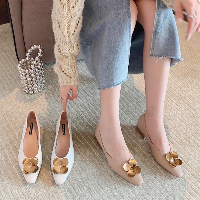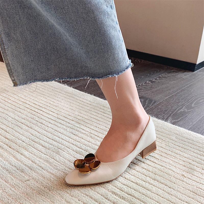 Обувь из натуральной кожи. Новые детские грубые туфли с квадратной головкой. Женская обувь Fairy Wind для профессиональной работы. Женская обувь на пригороде.;обувь