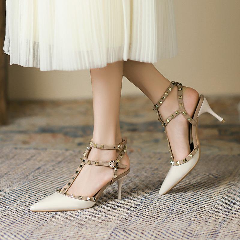 Туфли на высоком каблуке из лакированной кожи с заклепками, сексуальные босоножки с острым носком на высоком каблуке, босоножки на тонком каблуке для женщин — купить товар онлайн с бесплатной доставкой по всему миру!