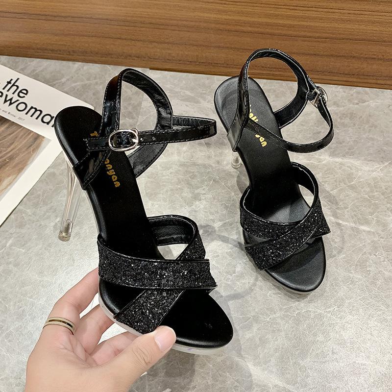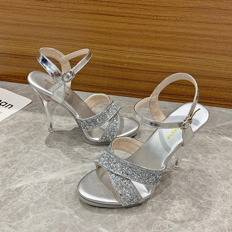 Новые женские модные сандалии на очень высоком каблуке в европейском и американском стиле со стразами и прозрачной подошвой, модные сандалии для подиума, свадебные туфли