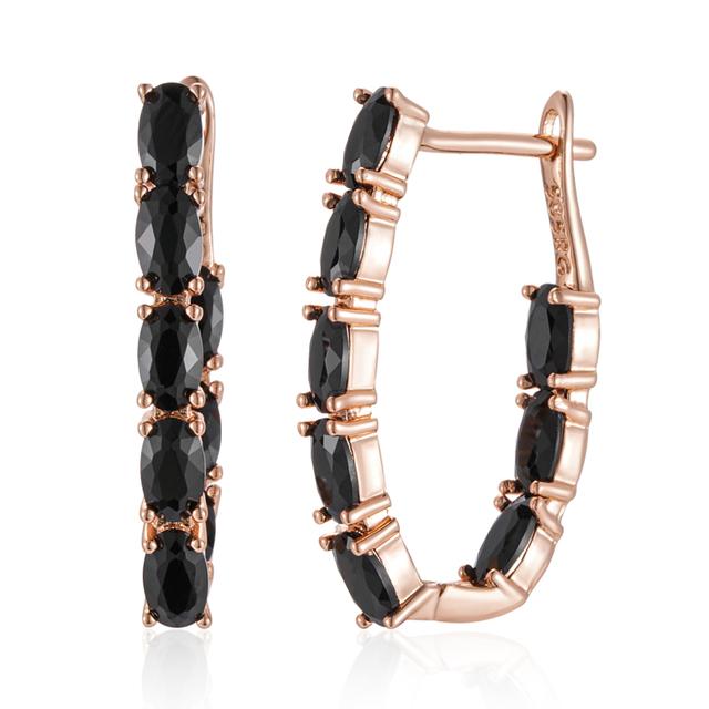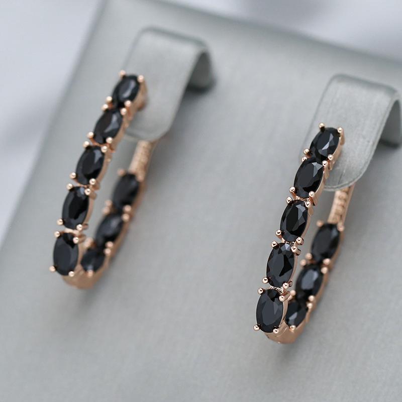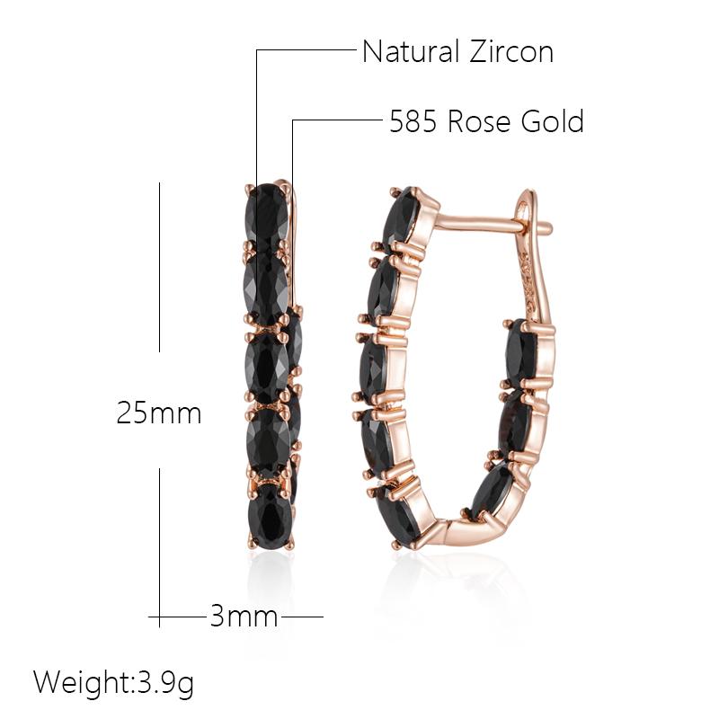 Модные стильные длинные серьги-капли с черным камнем для женщин, розовое золото 585 пробы, полная циркониевая оправа, роскошные модные ювелирные изделия, подарки