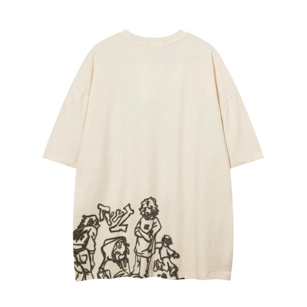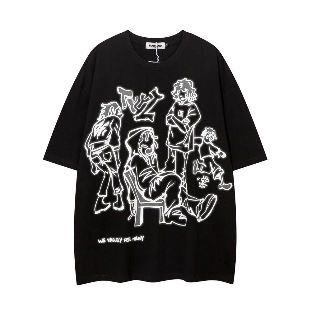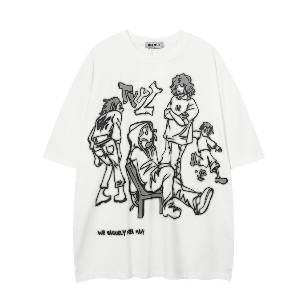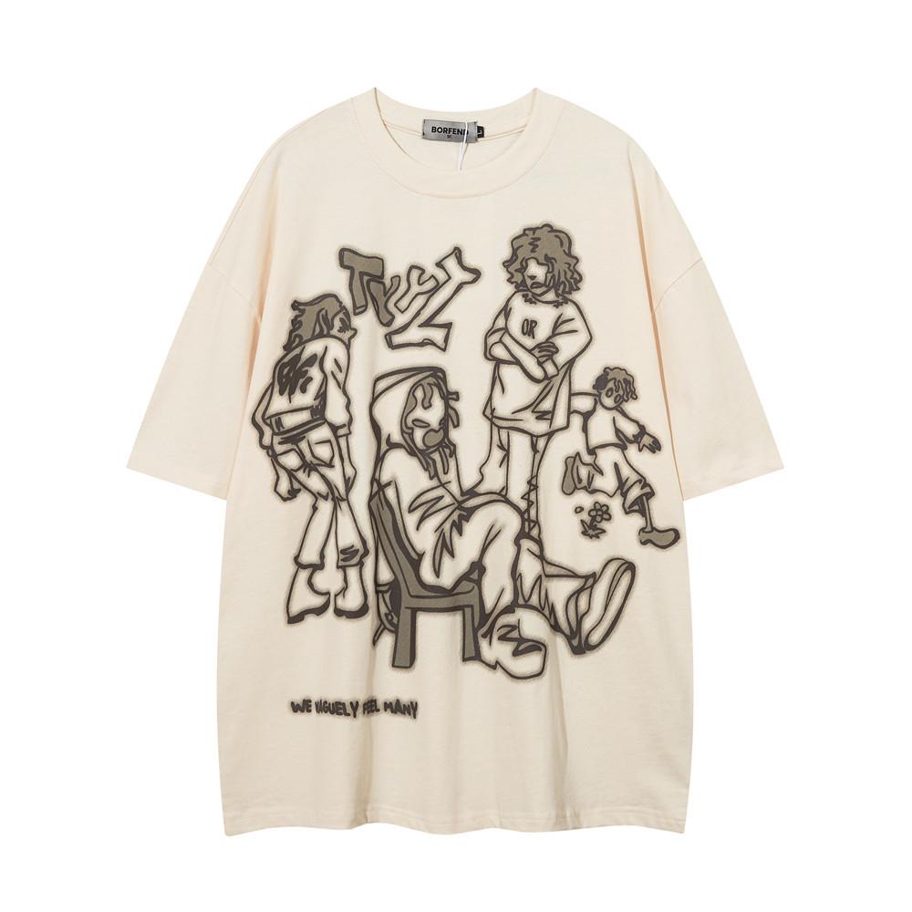 Летняя футболка с короткими рукавами и принтом в мультяшном стиле, мужская шикарная китайская повседневная дышащая рубашка с пятью рукавами, хлопковая футболка