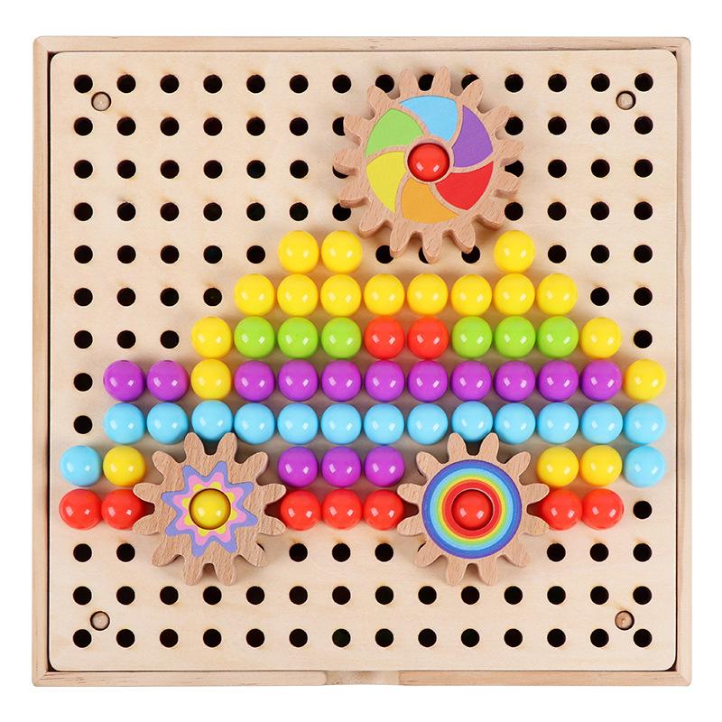 10. Эта игрушка-грибок для ногтей предлагает малышу много материала.. Помимо карточек сцен, вы можете свободно комбинировать узоры с грибообразными гвоздями и шестеренками разных цветов.