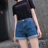 Джинсовые шорты с высокой талией. Женские летние свободные тонкие шорты А-силуэта с широкими штанинами.