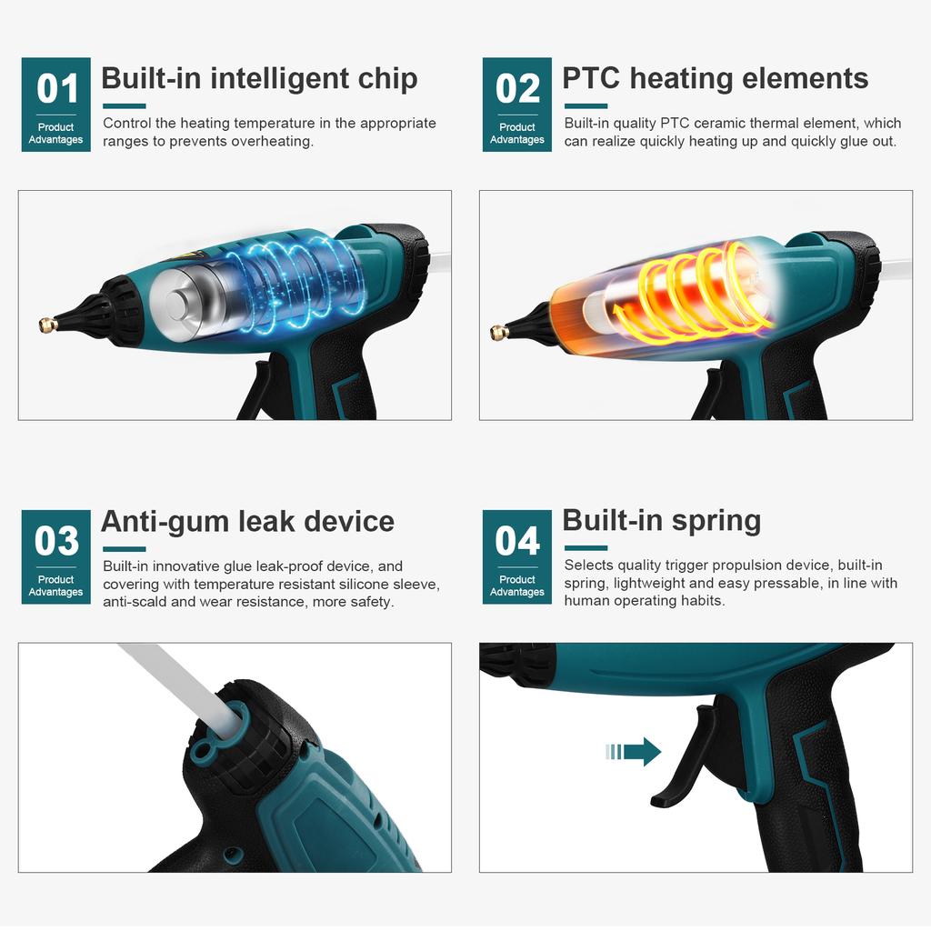 Встроенное инновационное герметичное устройство клея и покрытие термостойким силиконовым рукавом, защита от ожогов и износостойкости, большая безопасность.