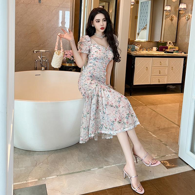 GMXIA Летнее женское нежное стильное платье с объемными рукавами на талии и цветочным принтом «рыбий хвост» — купить товар онлайн с бесплатной доставкой по всему миру!