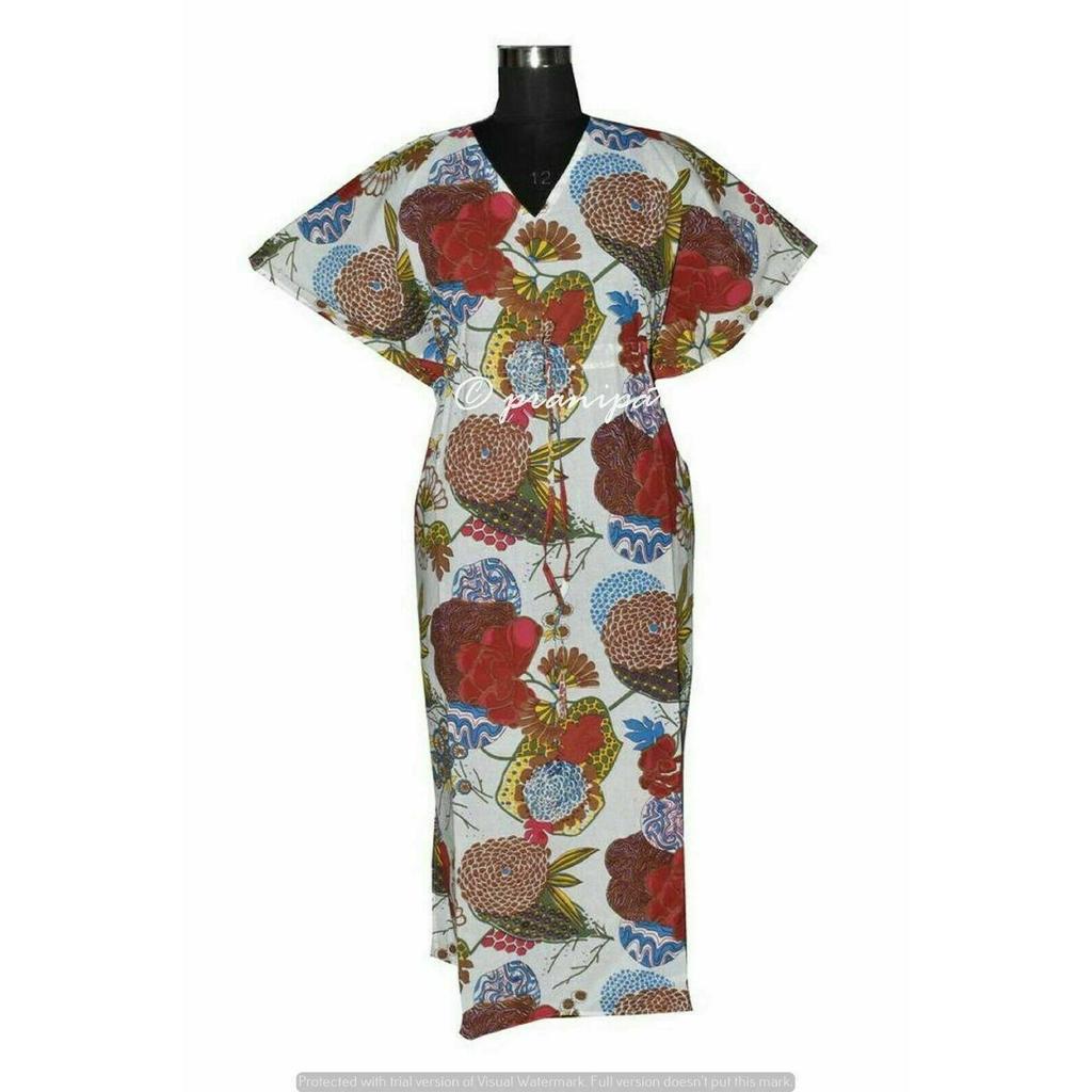 Индийское белое длинное хлопковое платье макси с фруктовым принтом в стиле хиппи, женское ночное платье-кафтан CKFTN-SCRN-FULL-BUYIT-024