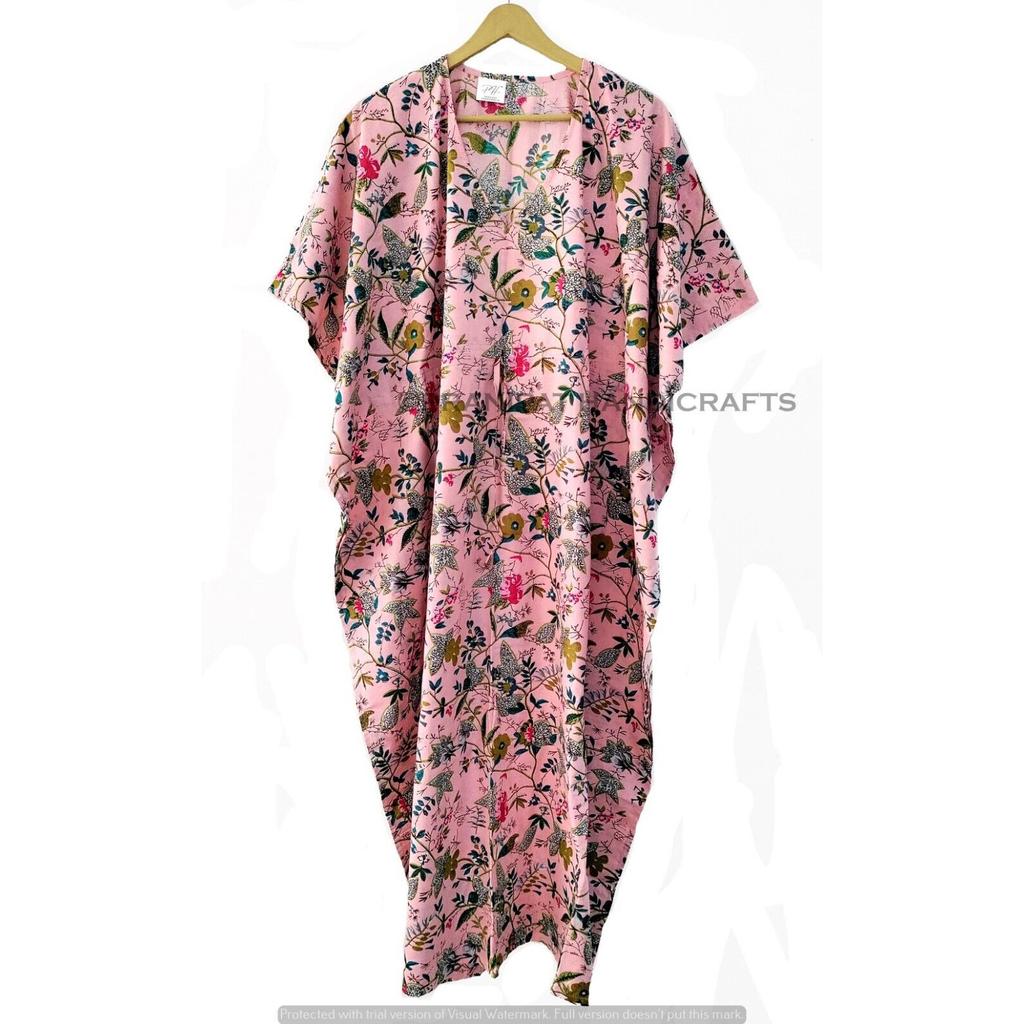 Длинное индийское персиковое платье с цветочным принтом из хлопка в стиле хиппи, макси, женская ночная рубашка, платье-кафтан CKFTN-SCRN-FULL-BUYIT-143