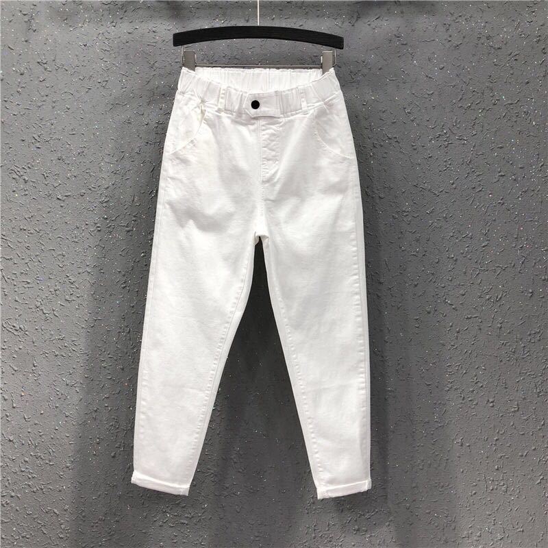 Модные женские брюки-шаровары, повседневные женские брюки с девятью точками, весенне-осенние однотонные свободные брюки с тонкой эластичной резинкой на талии, хлопковые эластичные джинсы