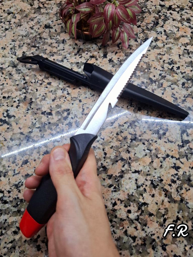 Нож для рыбалки! Заказала для мужа, он фанат рыбалки) Упаковано в картонную коробочку и пупырку, при транспортировке не повредился. В комплекте ножны. Лезвие из нержавеющей стали, ручка из пластика. Нож режет хорошо. Длина 26 см. Доставка до Республики Бурятия заняла четыре недели, трек отслеживался. Хорошего настроения)