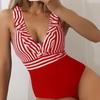 Летний женский цельный купальник с подушечками на груди без стального бюстгальтера, купальник бикини в полоску с принтом и оборками по краям