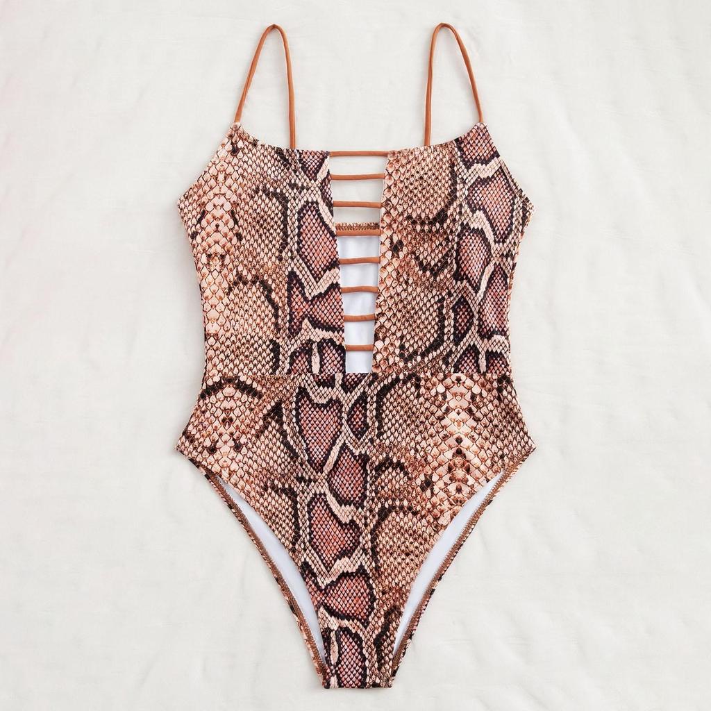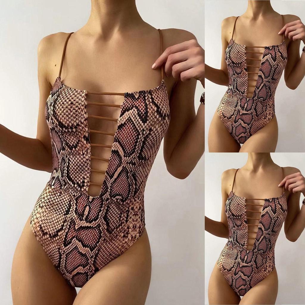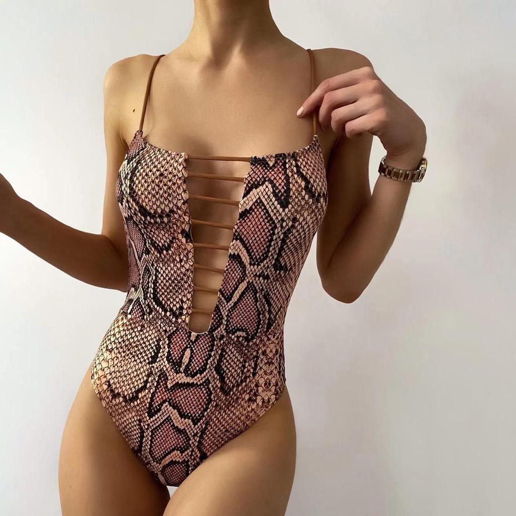Женский сексуальный купальник с принтом змеиной кожи Hollow Rope One Piece