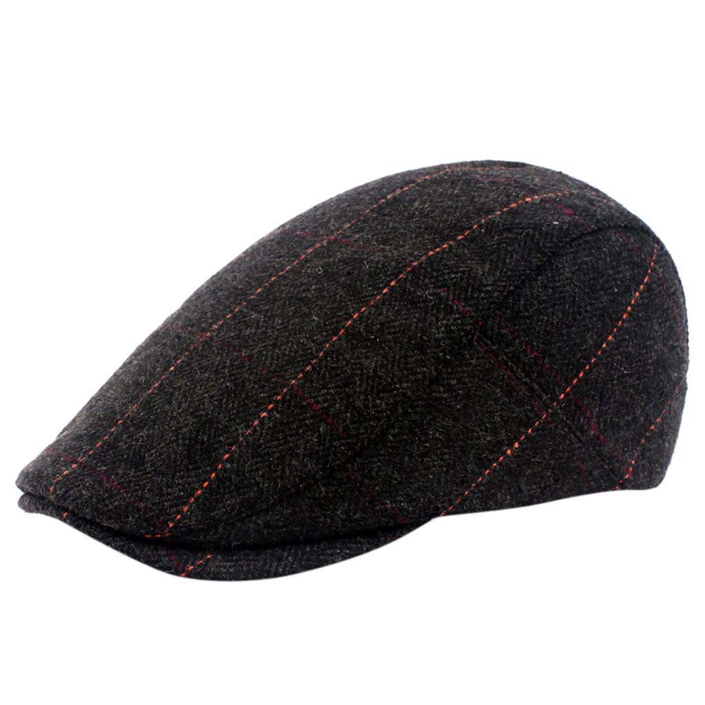 Черная твидовая плоская кепка Newsboy Baker Boy с узором «елочка» Мужская шляпа