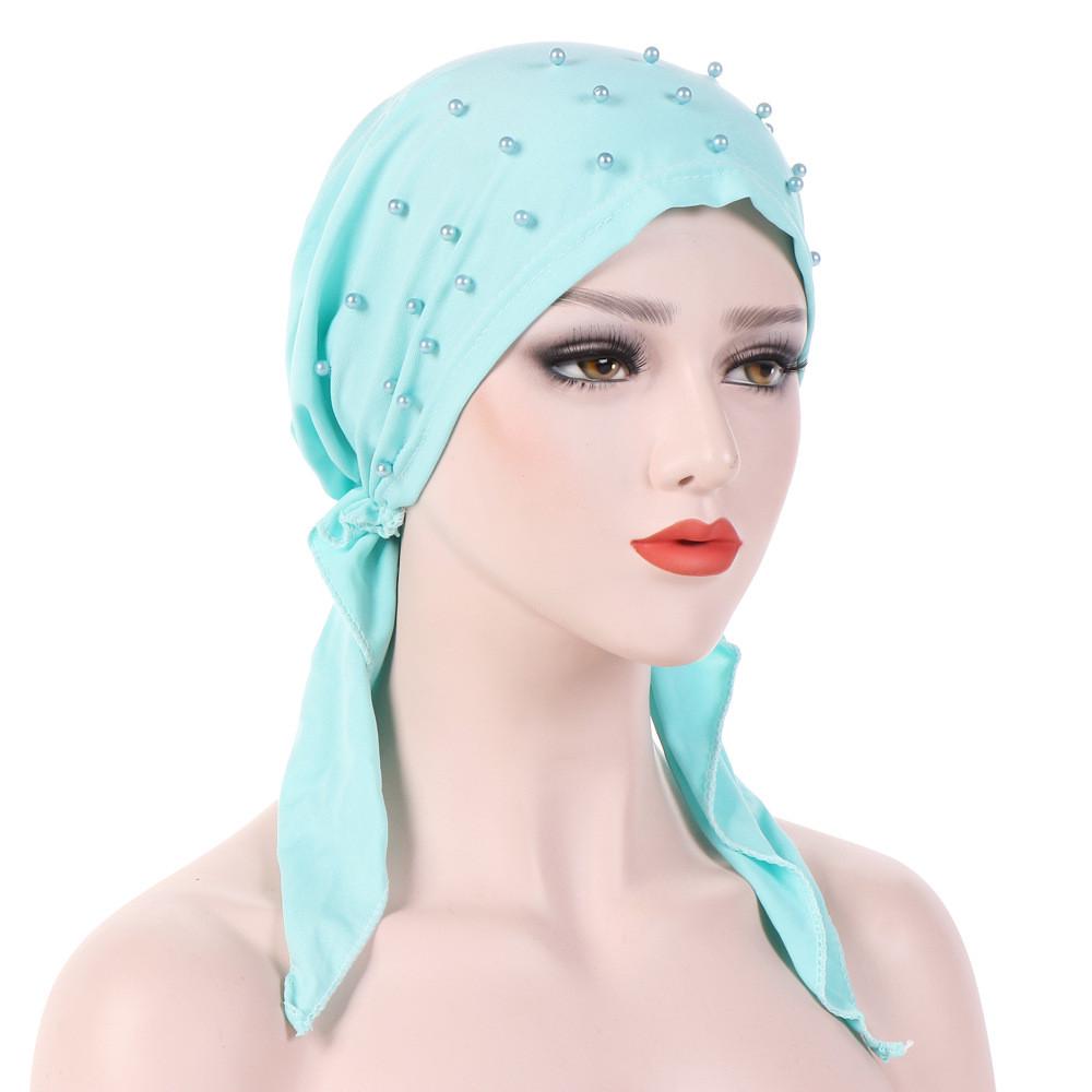 Женский индийский мусульманский тюрбан с бисером, хлопковый тюрбан с выпадением волос, платок на голову