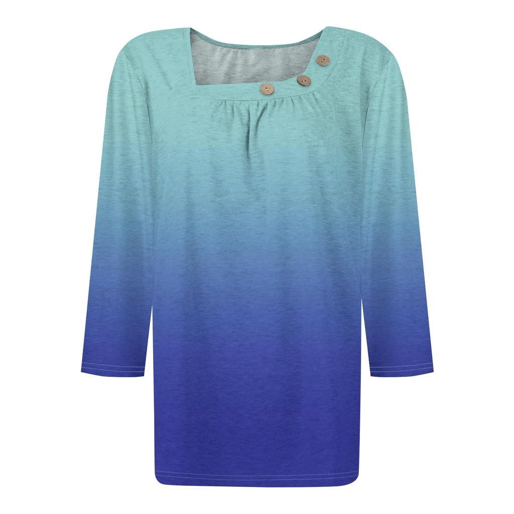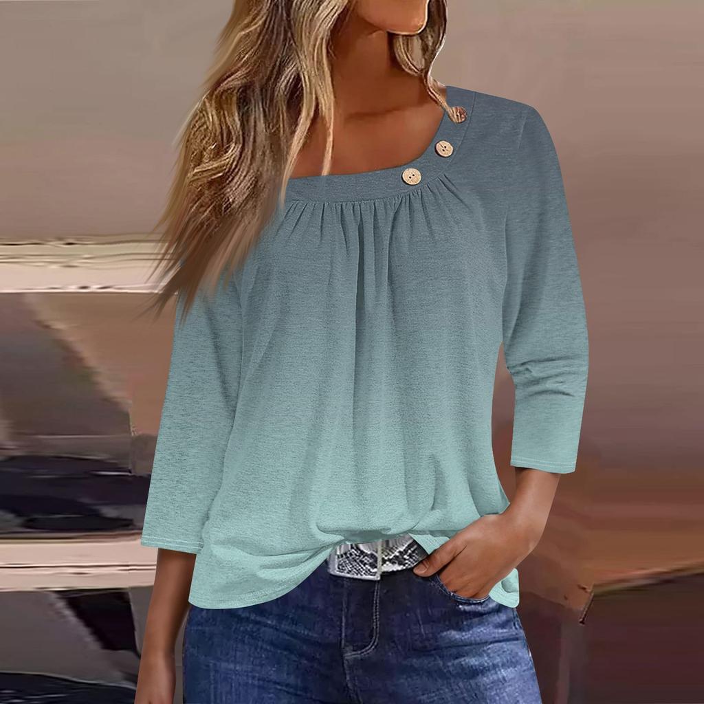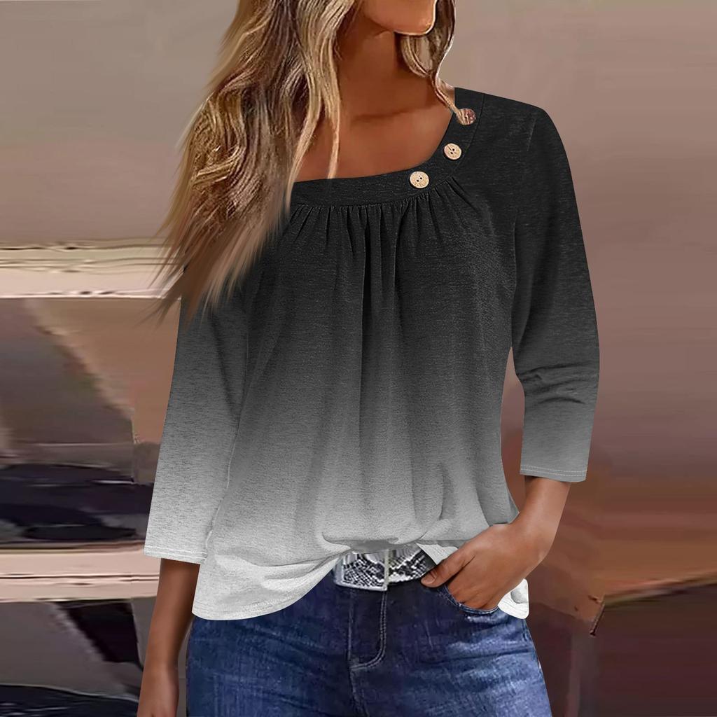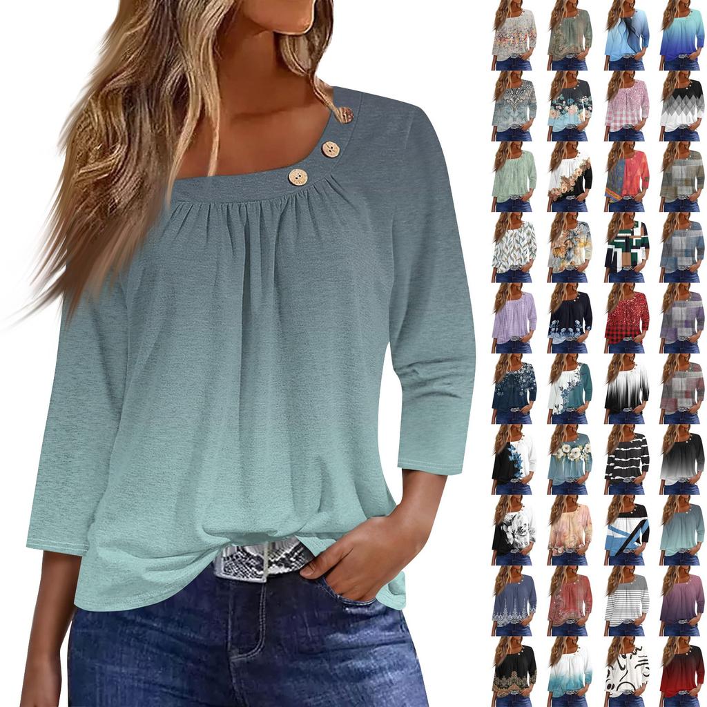 Жен. Футболка Футболка С принтом Пуговицы Рукав 3/4 Повседневные Выходные Мода Классический Классический Верх