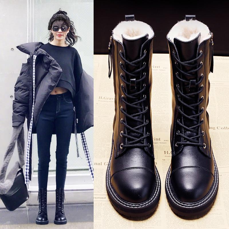 Ботинки модные женские короткие ботинки для девочек зимние ботинки из искусственной кожи с боковой молнией нескользящие теплые туфли плюшевые внутренние шнурки -Upblack — купить товар онлайн с бесплатной доставкой по всему миру!