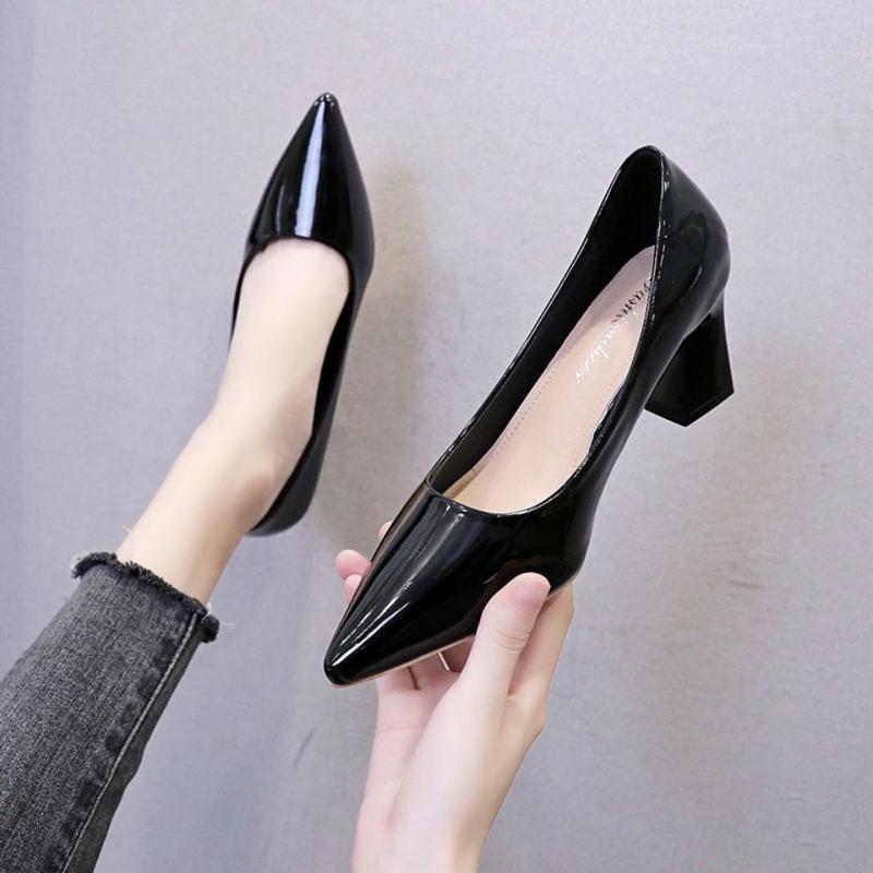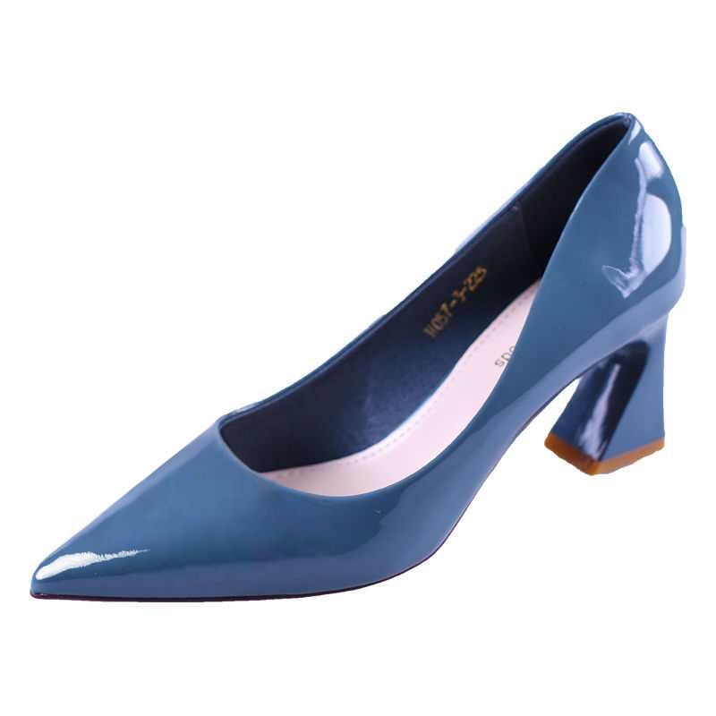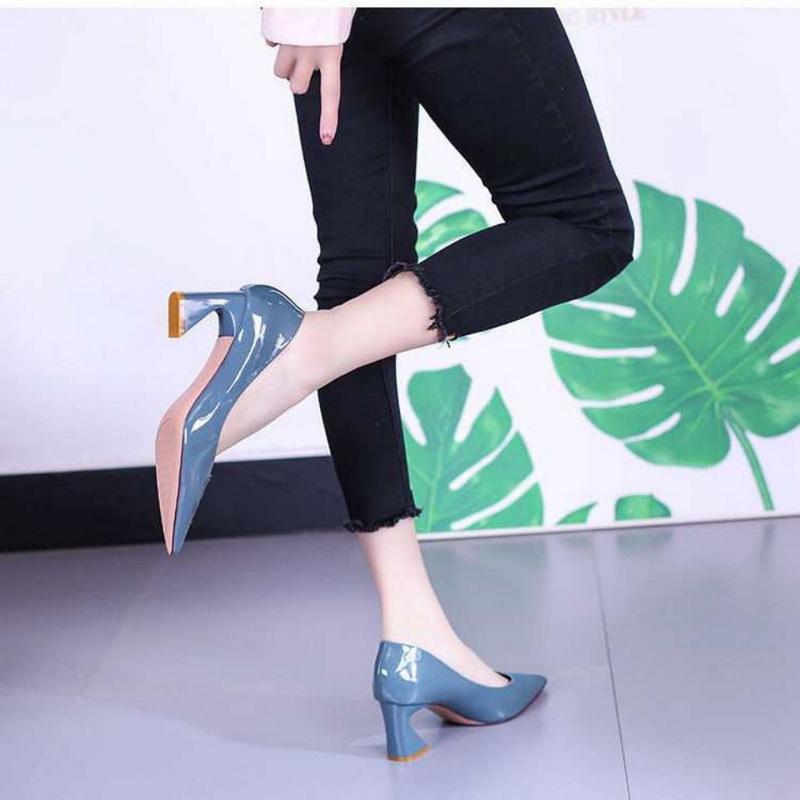 Весенние высокие каблуки, офисная женская рабочая обувь, женские туфли-лодочки, модный блочный каблук, острый носок, без шнуровки, синий, черный, красный, Прямая поставка