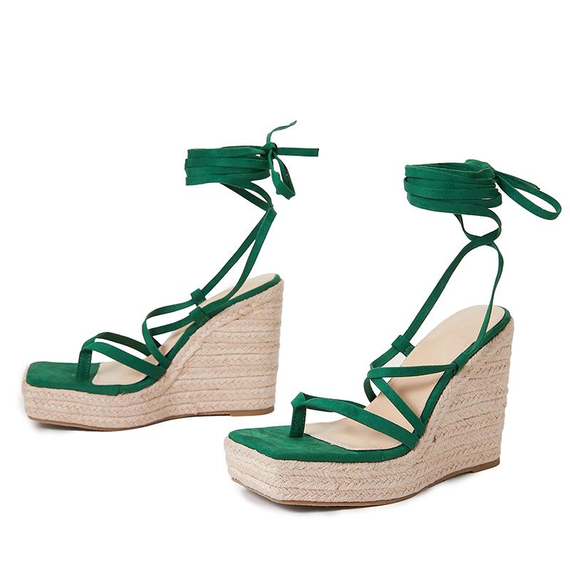 Летние женские сандалии-гладиаторы на платформе на высоком каблуке 12,5 см и 3,5 см, сандалии-гладиаторы на танкетке с перекрестными ремешками, женские зеленые вечерние туфли для маффинов