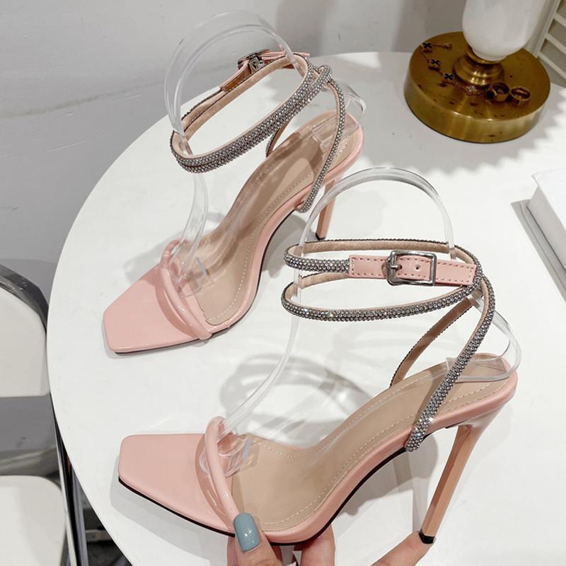 Новые модные сандалии со стразами, женские летние туфли с ремешком на щиколотке с кристаллами, туфли на высоком каблуке для вечеринки, свадьбы, выпускного вечера, туфли на шпильке с открытым носком