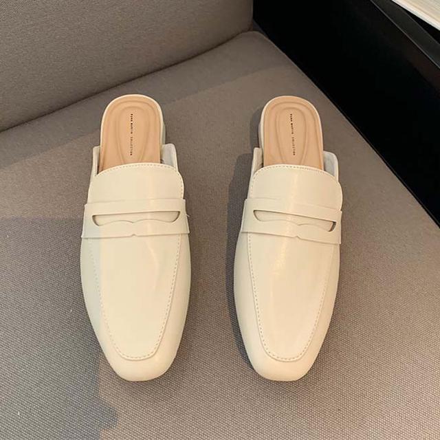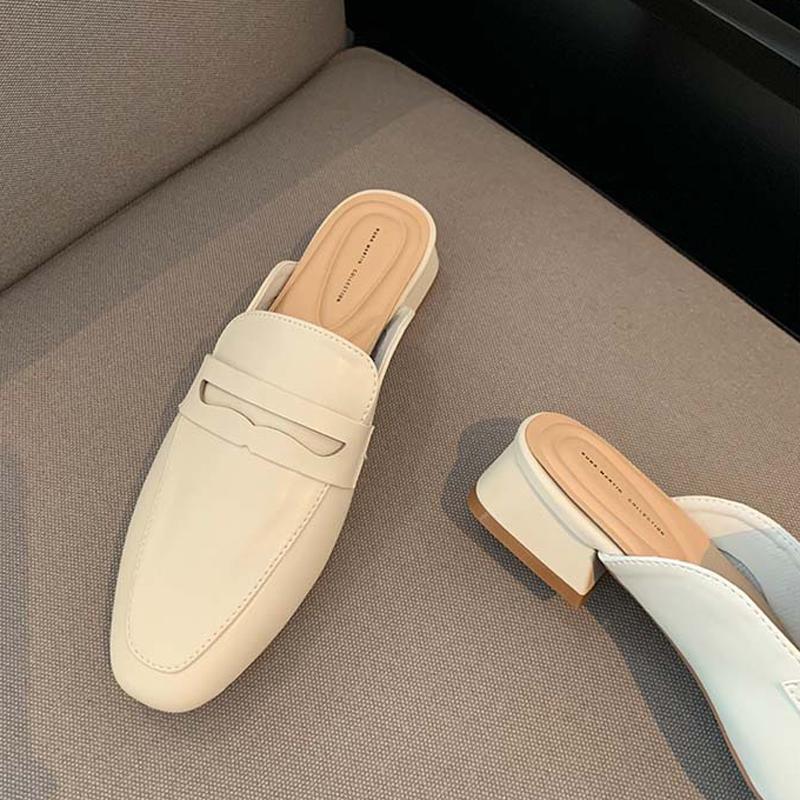 Летние женские туфли без шнуровки, лоферы на плоской подошве, мокасины с закрытым квадратным носком, модные удобные туфли-лодочки из искусственной кожи с открытой спиной, повседневные шлепанцы