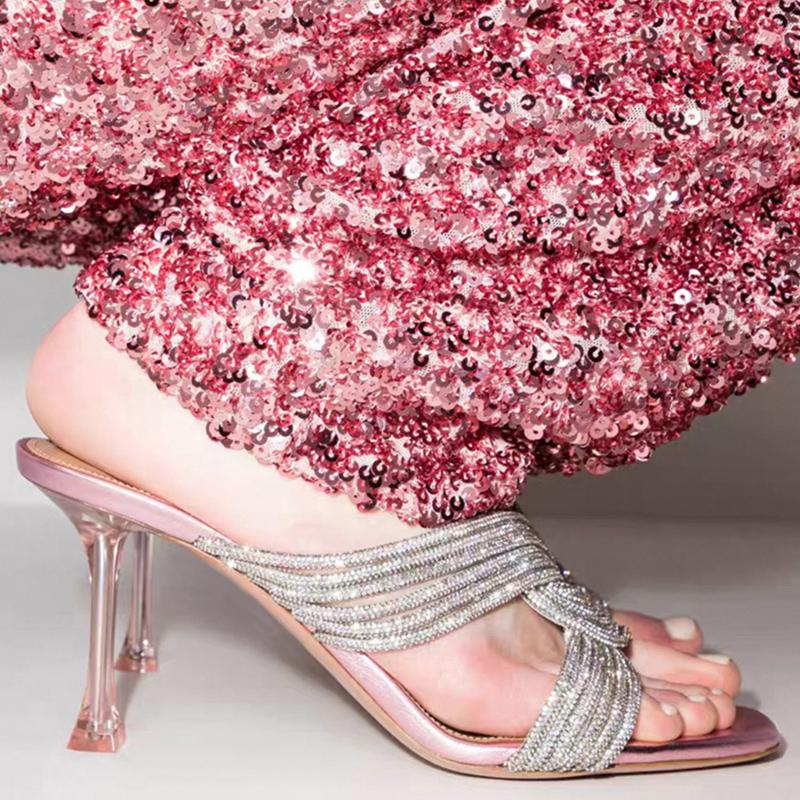Новые женские босоножки со стразами на высоком каблуке, женские сандалии с открытым носком, туфли для вечеринок, женские модные сандалии De Las Mujeres