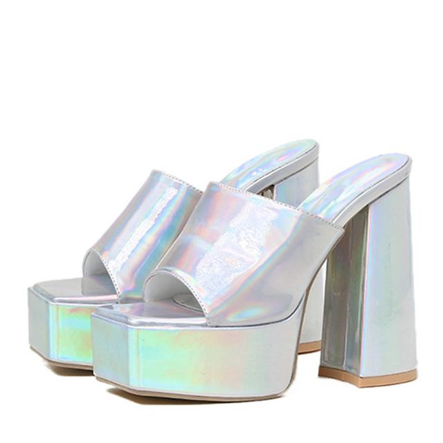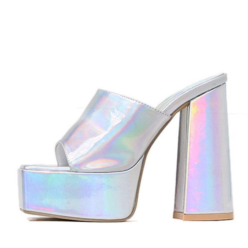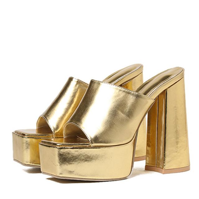 Новые пикантные шлепанцы на платформе с открытым носком на массивном каблуке, женские летние вечерние модельные сандалии высокого качества из искусственной кожи, женская обувь