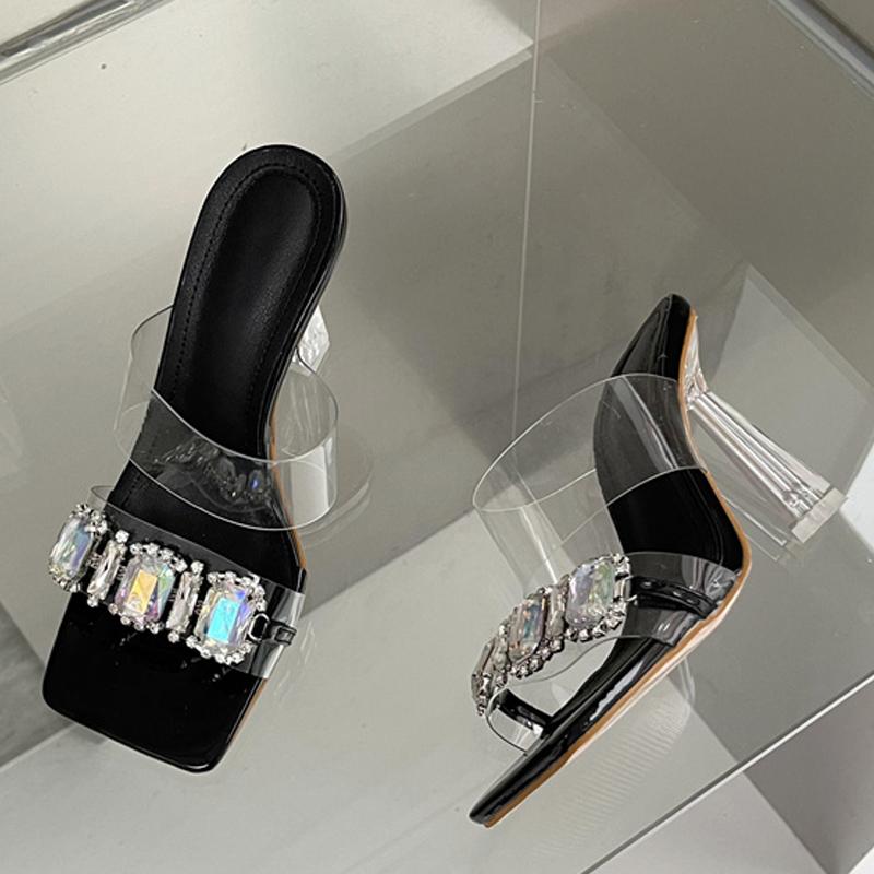 Liyke/Новые женские туфли-лодочки на прозрачном каблуке с большой цепочкой из кристаллов и стразами, летние прозрачные сандалии из ПВХ с квадратным носком, свадебные туфли