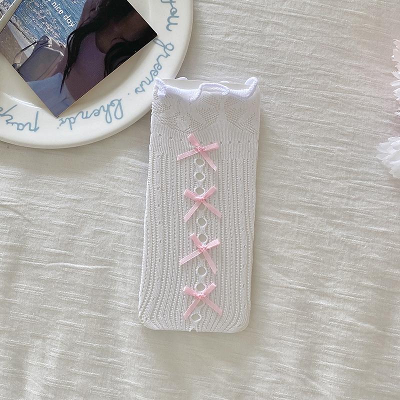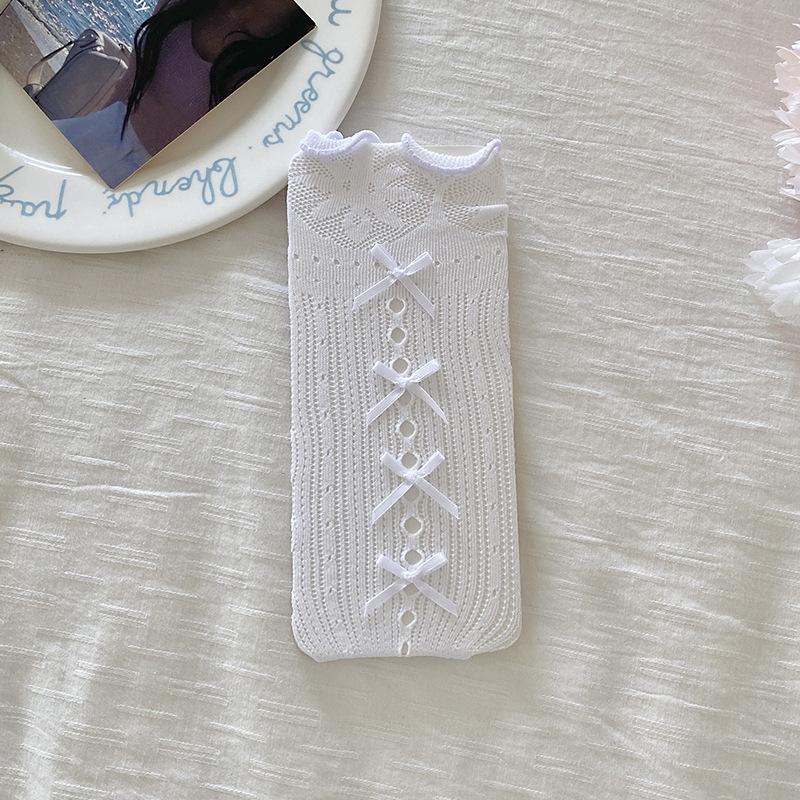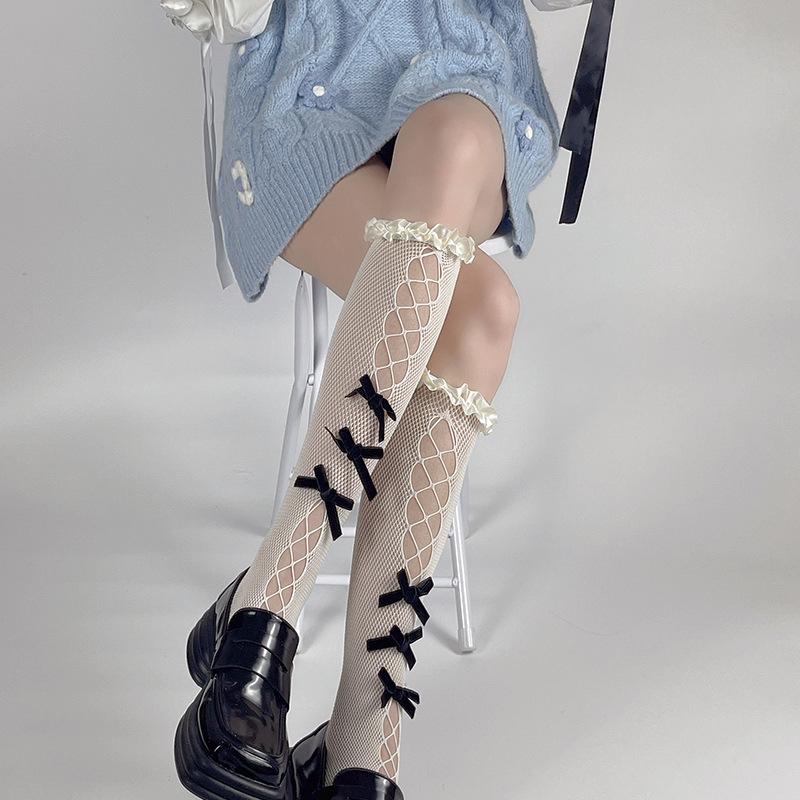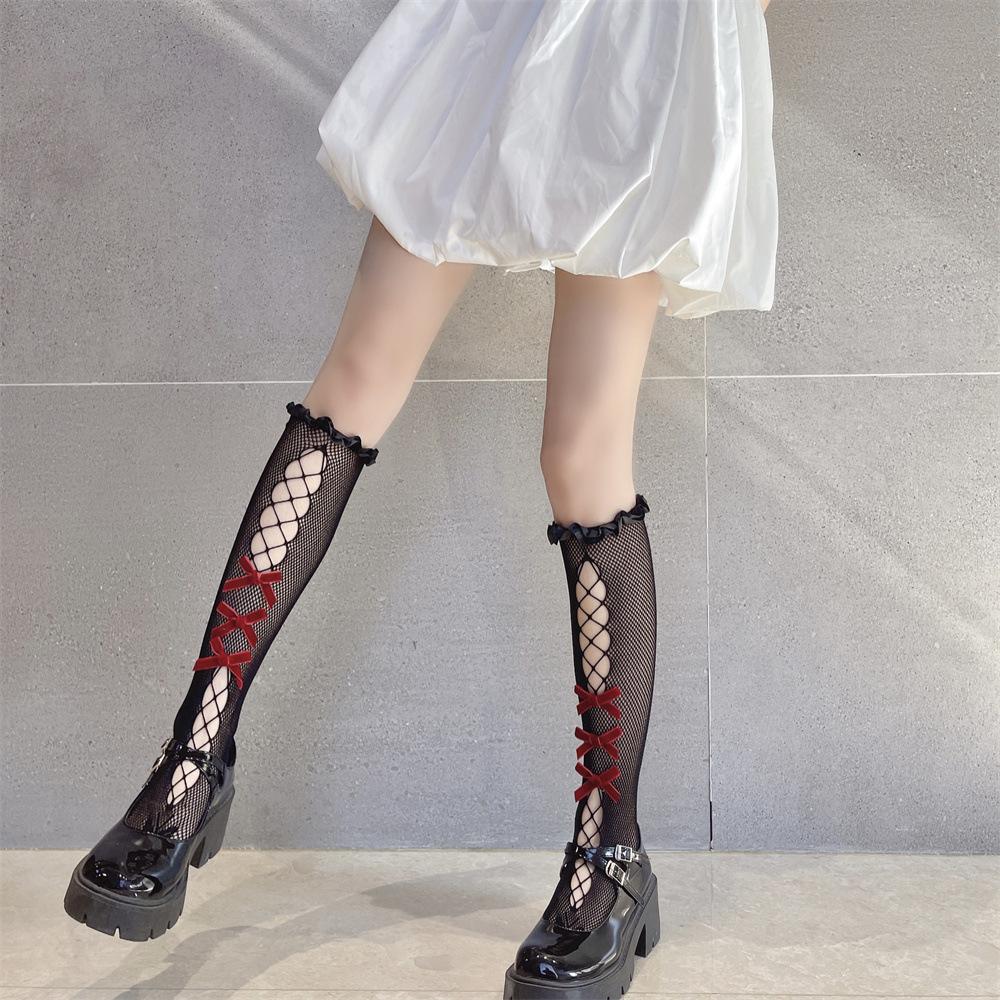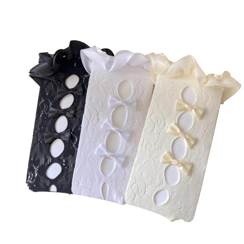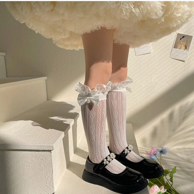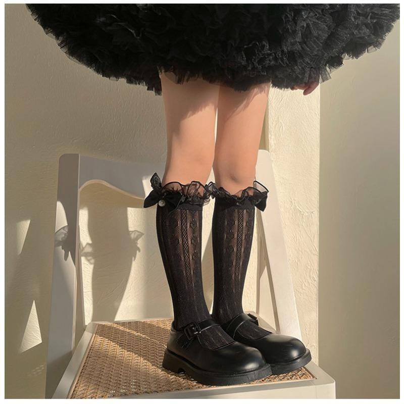 1 пара милых носков до колена для девочек, гольфы принцессы Лолиты с рюшами и бантом для малышей, летние тонкие дышащие носки в сеточку