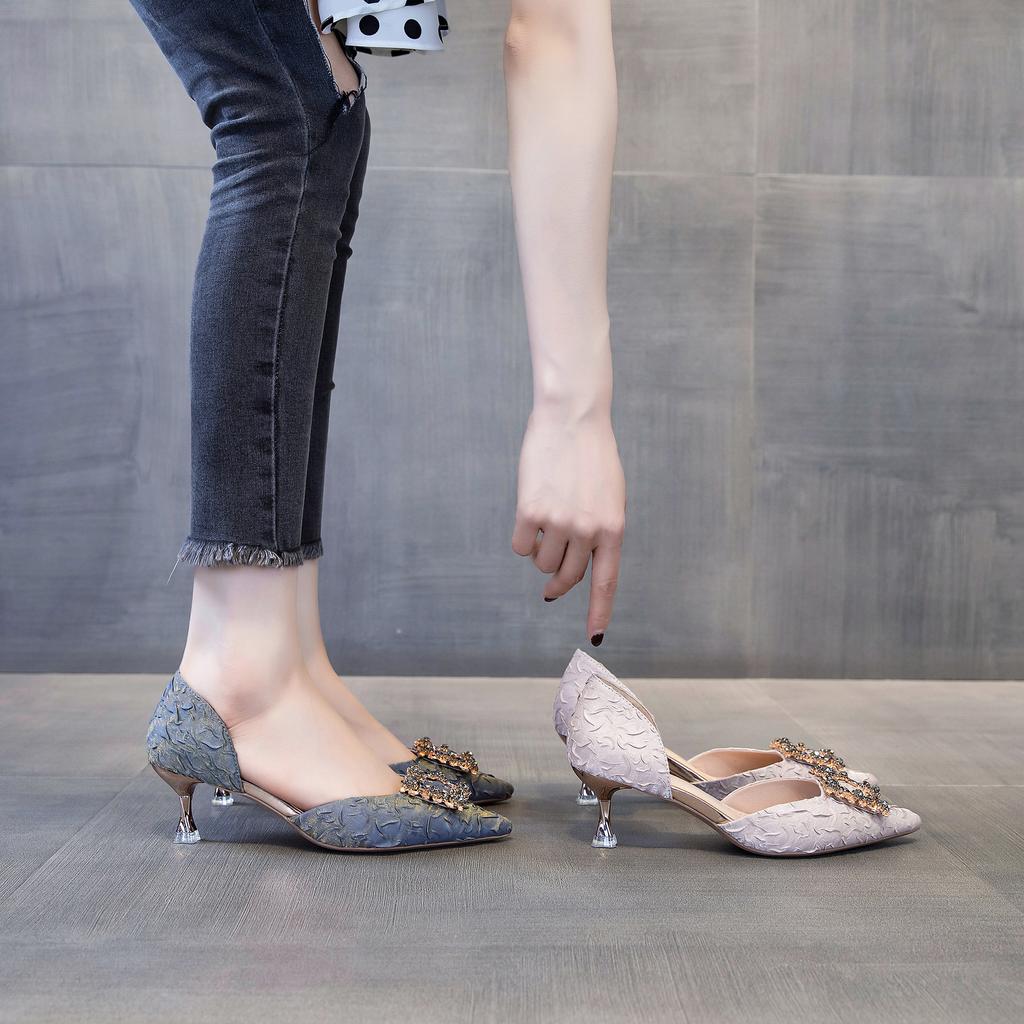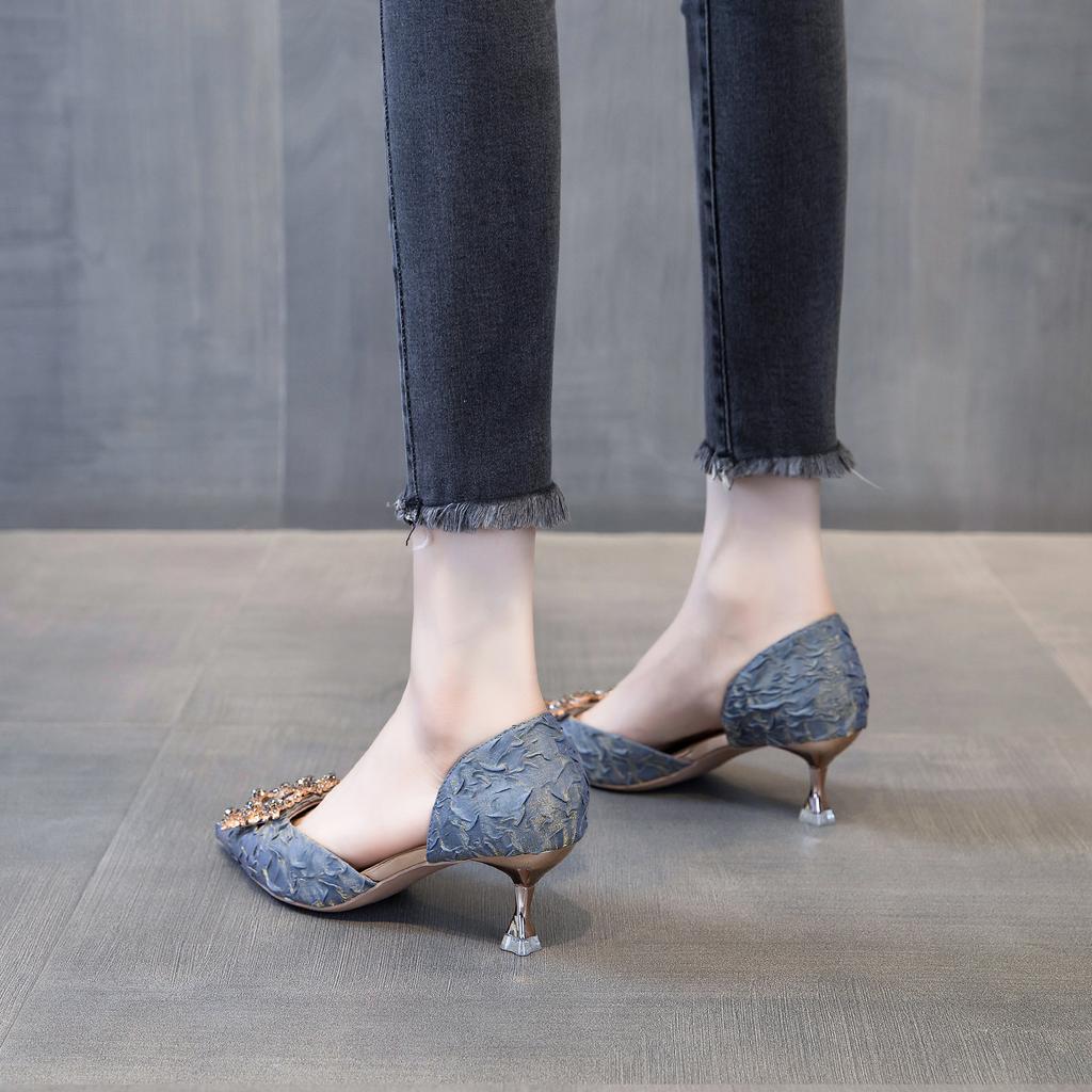 Женские туфли-лодочки, элегантные свадебные туфли на высоком каблуке со стразами и острым носком, женские туфли-лодочки на каблуке 5,5 см с кристаллами, сандалии на пикантном каблуке