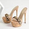 Женские тапочки на платформе, пикантные леопардовые танцевальные сандалии, модные деревянные туфли для стриптиза на высоком каблуке с толстой подошвой