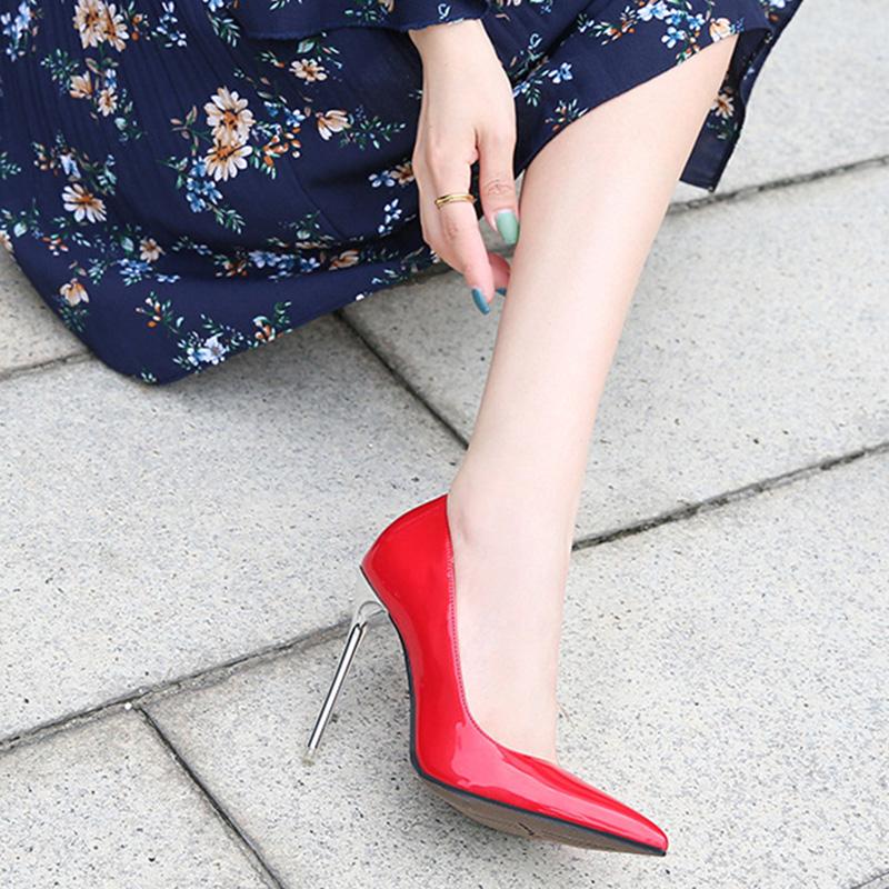 Женские туфли-лодочки на высоком каблуке 11 см, женские туфли-лодочки на шпильке с острым носком, женские туфли больших размеров, красные глянцевые туфли телесного серебра