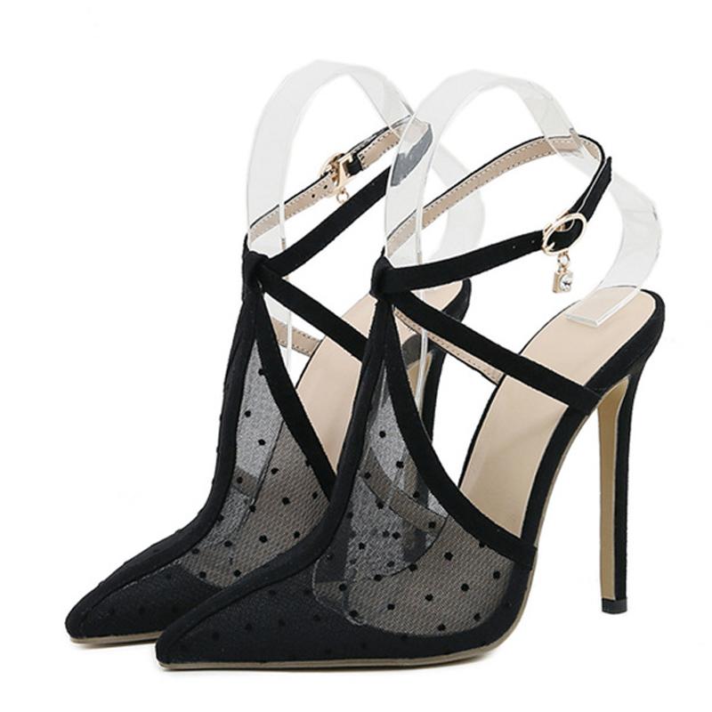 Liyke/Модные черные сетчатые сандалии на высоком каблуке с острым носком и острым носком, женские туфли-лодочки с пряжкой на щиколотке и ремешком для вечеринок, женские туфли-лодочки