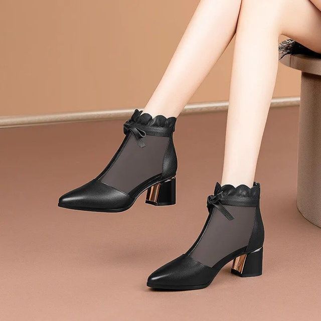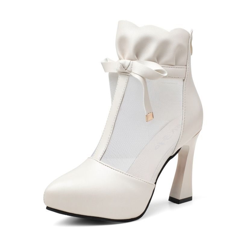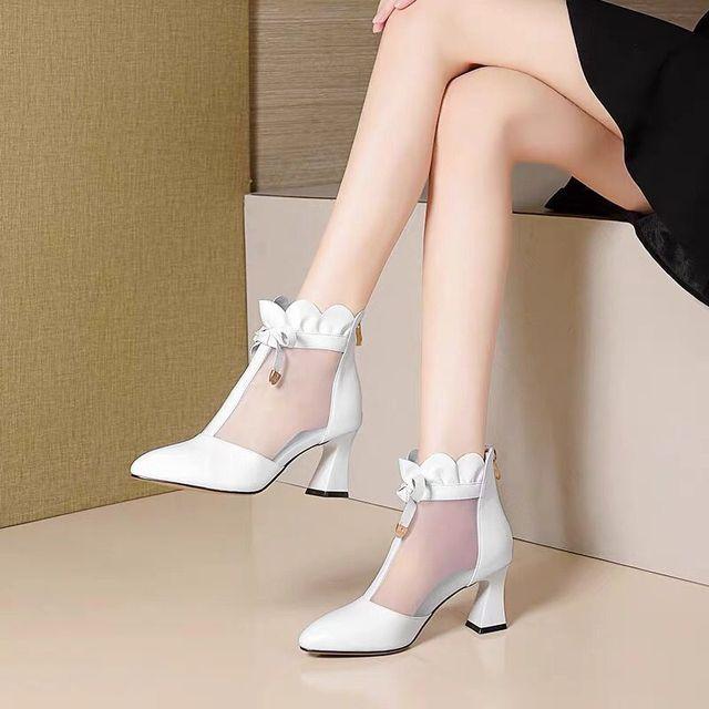 Летние короткие сапоги, женская обувь на высоком каблуке, сетчатая обувь на платформе, квадратные сандалии, женская обувь с вырезами